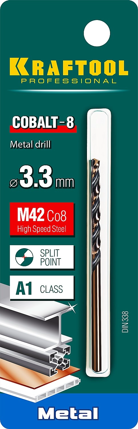 ПроизводителиСверло по металлу ц/х 3.3х36х65 мм, HSS-Co, класс A "PRO" (29656-3.3) KRAFTOOL