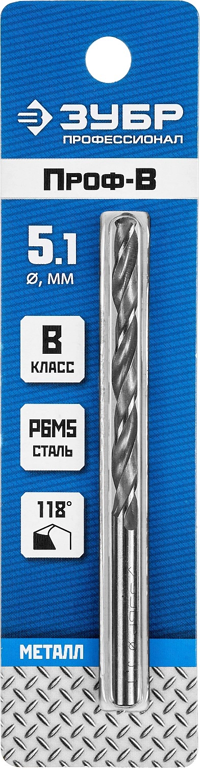 ПроизводителиСверло по металлу ц/х 5.1х52х86 мм, HSS, класс B "Проф-В""ПРОФЕССИОНАЛ" (29621-5.1) ЗУБР