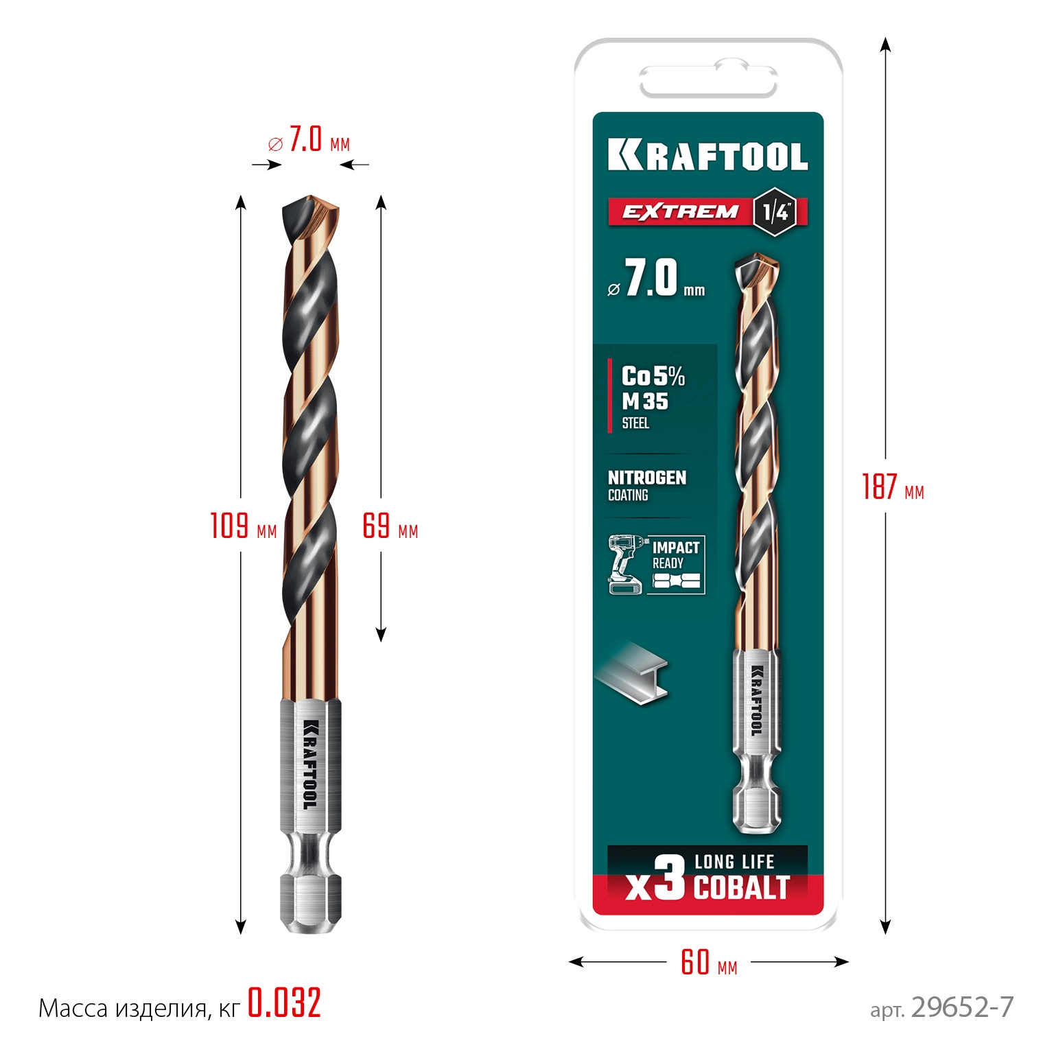 ПроизводителиСверло по металлу ц/х 7.0х69х109 мм, HSS, хв. HEX 1/4", класс A1 "IMPACT READY" (29652-7) KRAFTOOL