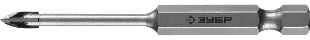 ПроизводителиСверло по кафелю, керамике, стеклу, с четырьмя режущими лезвиями, шестигранный хвостовик, 4 мм, ЗУБР