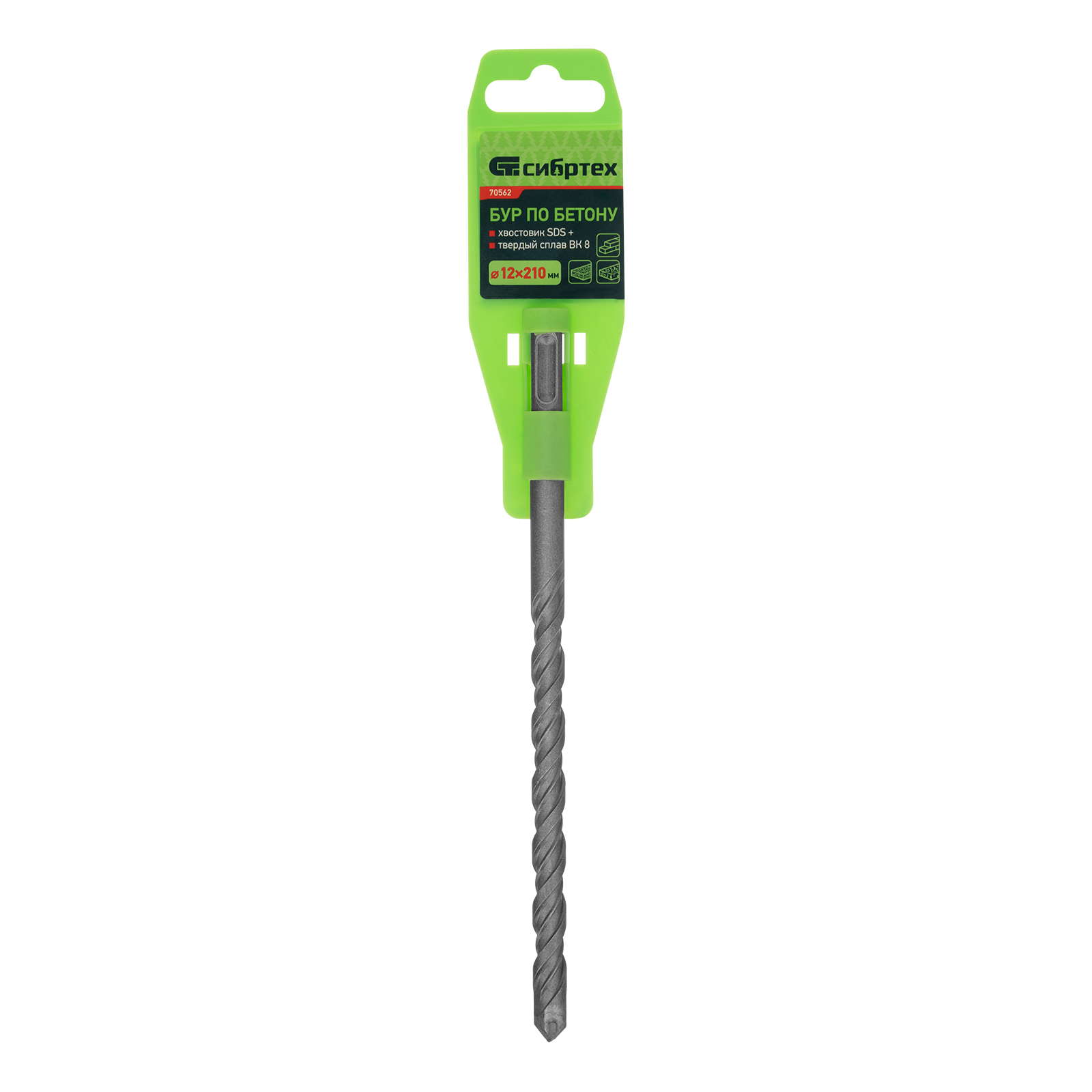 Бур по бетону Сибртех 70562 размером 12 х 210 мм предназначен для перфораторов с хвостовиком типа SDS Plus.