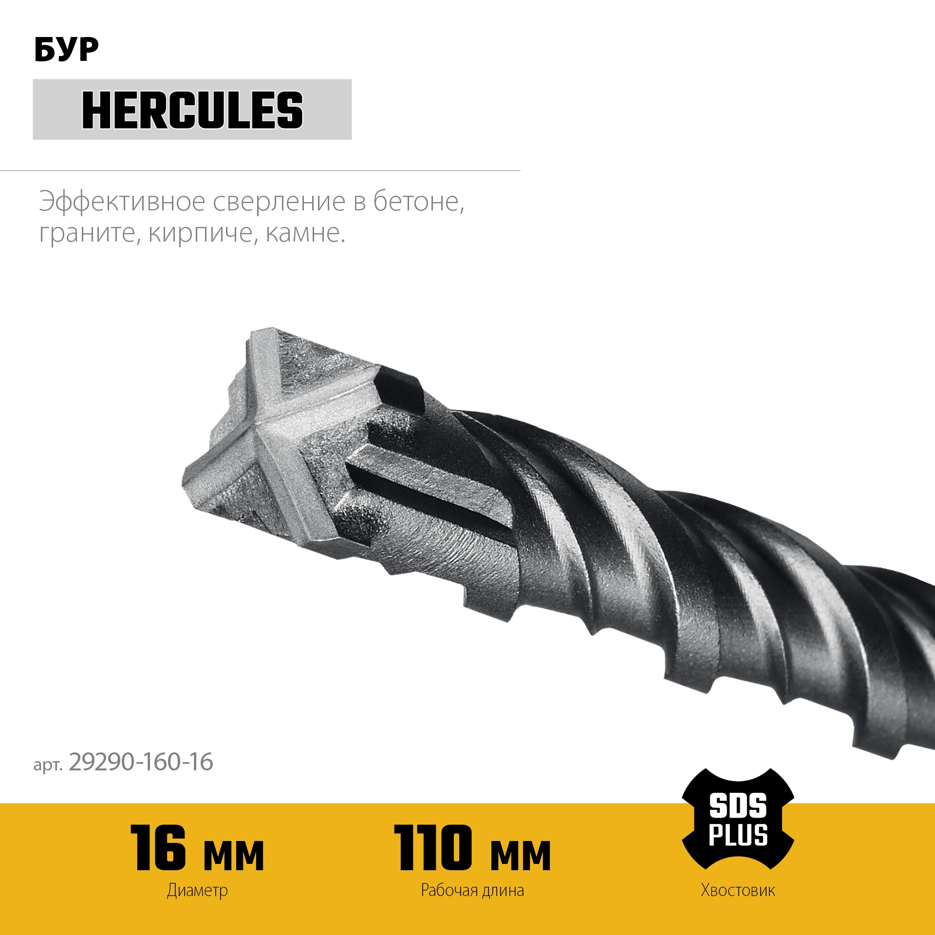 ПроизводителиСверло SDS-plus 16х110х160 мм "квадро""HERCULES-4Х" (29290-160-16) STAYER