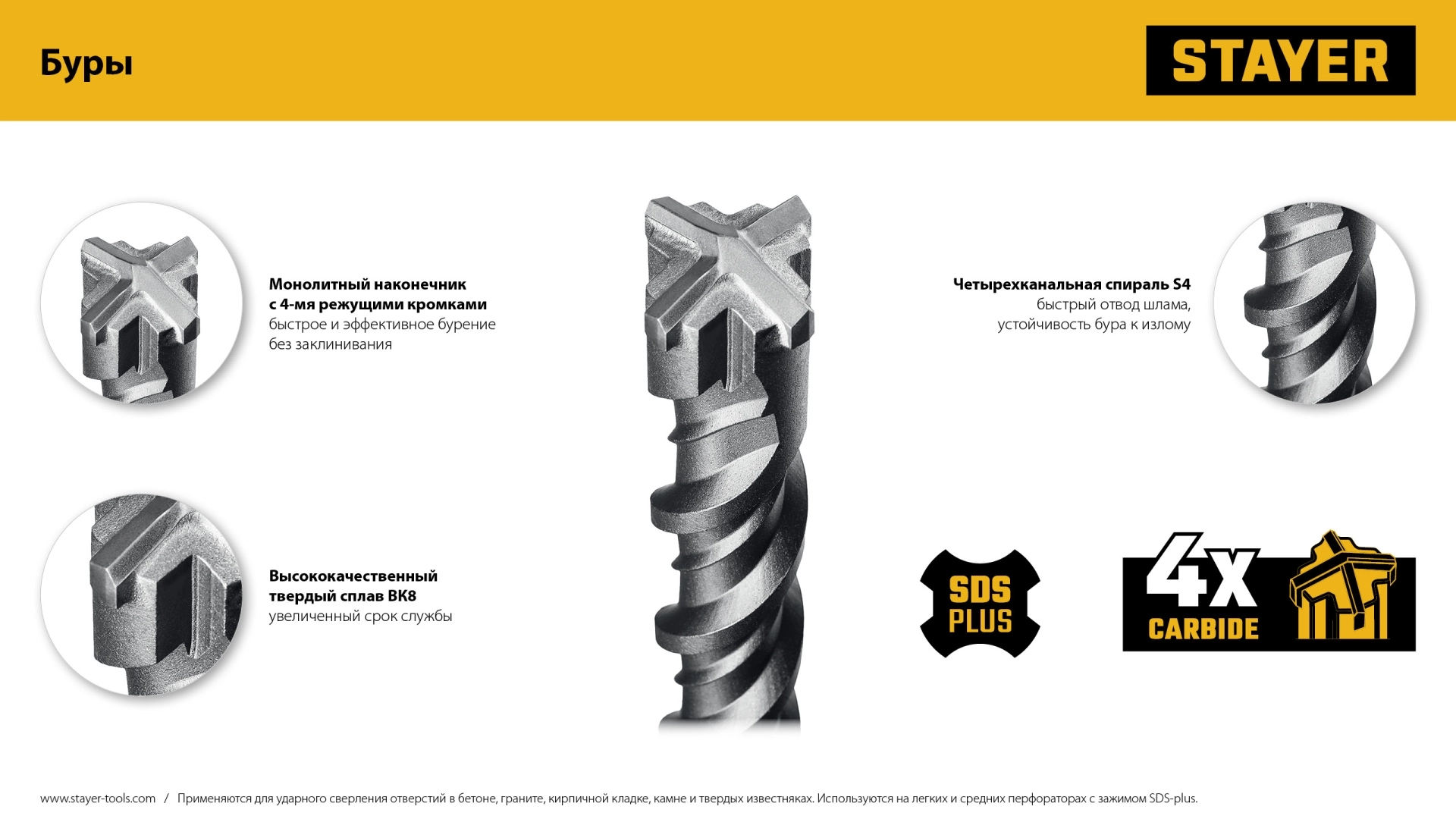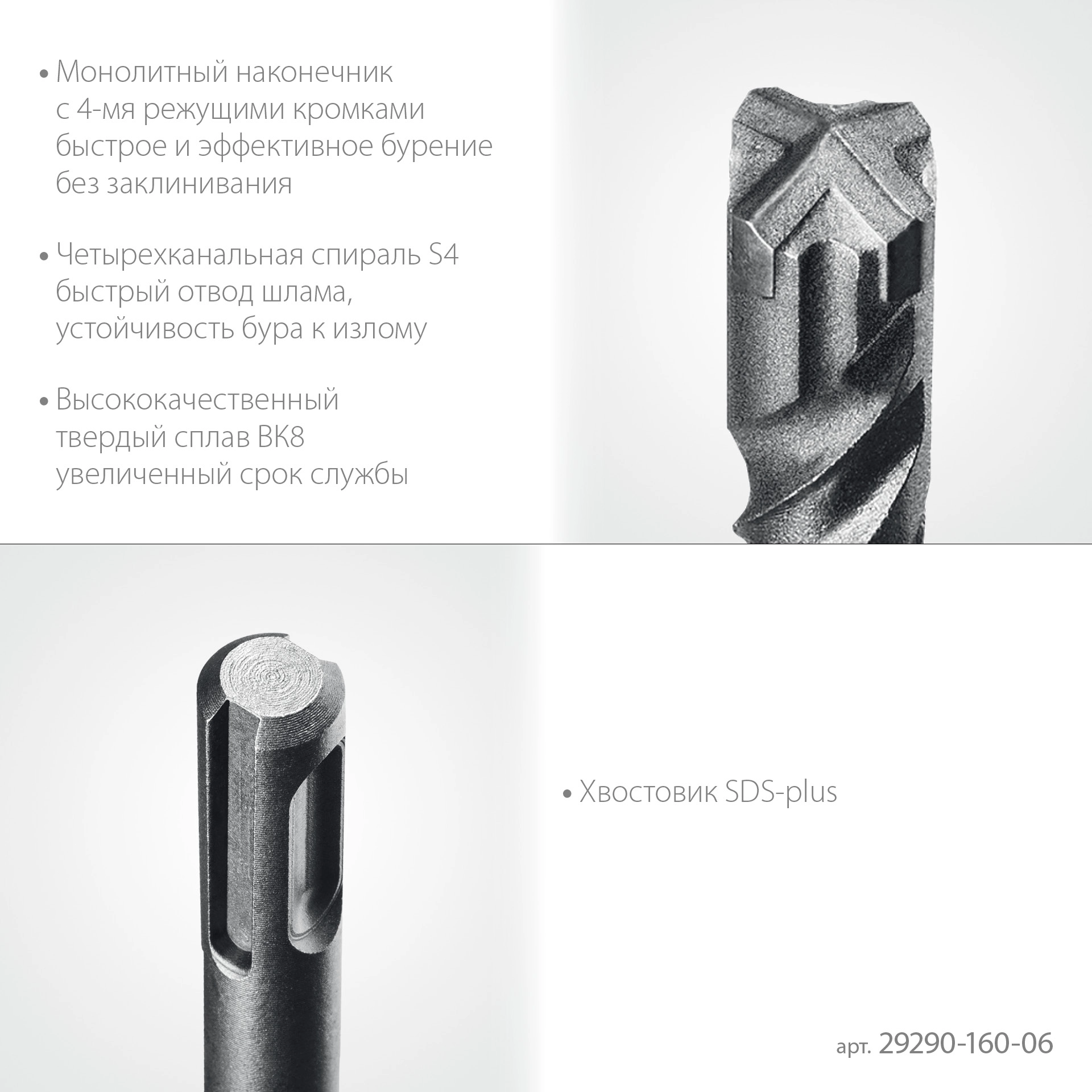 ПроизводителиСверло SDS-plus 6х110х160 мм "квадро""HERCULES-4Х" (29290-160-06) STAYER