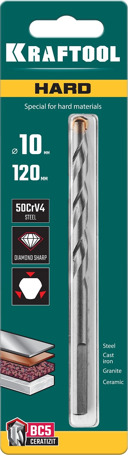 ПроизводителиСверло специальное по твёрдым материалам, 10х120мм, тв.сплав ВС5, Hard (29177-120-10) KRAFTOOL