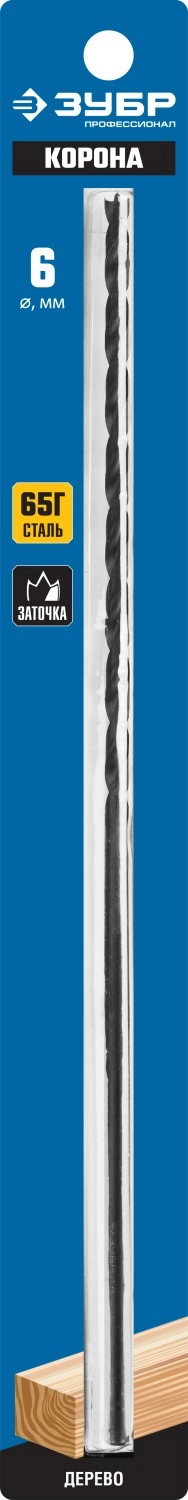 ПроизводителиСверло спиральное по дереву, М-образная заточка, сталь 65Г, ЗУБР Профессионал 29421-300-06, d=6х300м