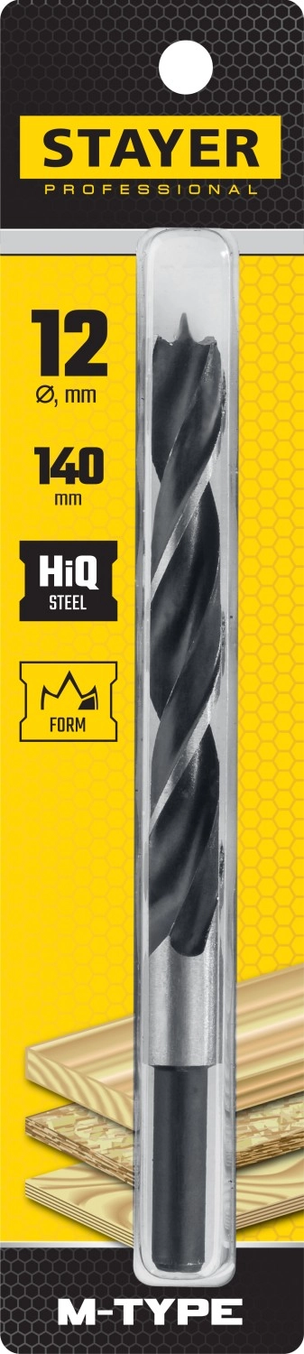 ПроизводителиСверло спиральное по дереву "M-type", сталь HCS, Professional , d=12мм (2942-140-12_z02) STAYER
