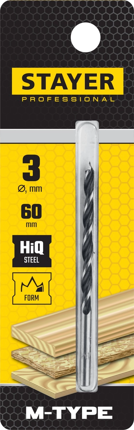 ПроизводителиСверло спиральное по дереву "M-type", М-образная заточка, сталь HCS, STAYER Professional 2942-060-03