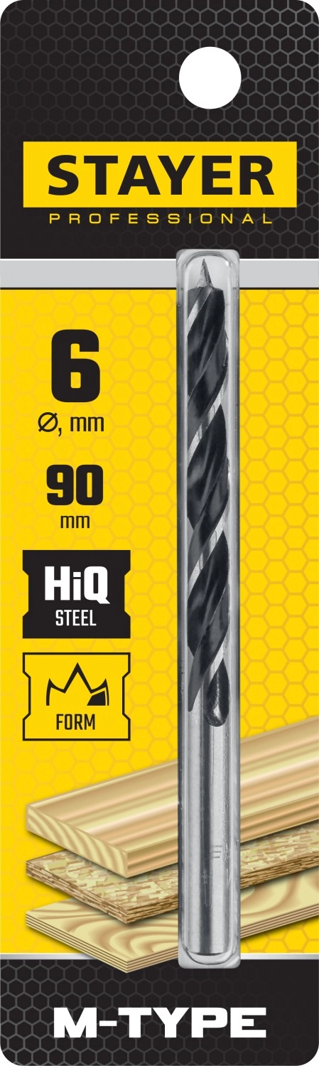 ПроизводителиСверло спиральное по дереву "M-type", сталь HCS, Professional , d=6мм (2942-090-06_z02) STAYER
