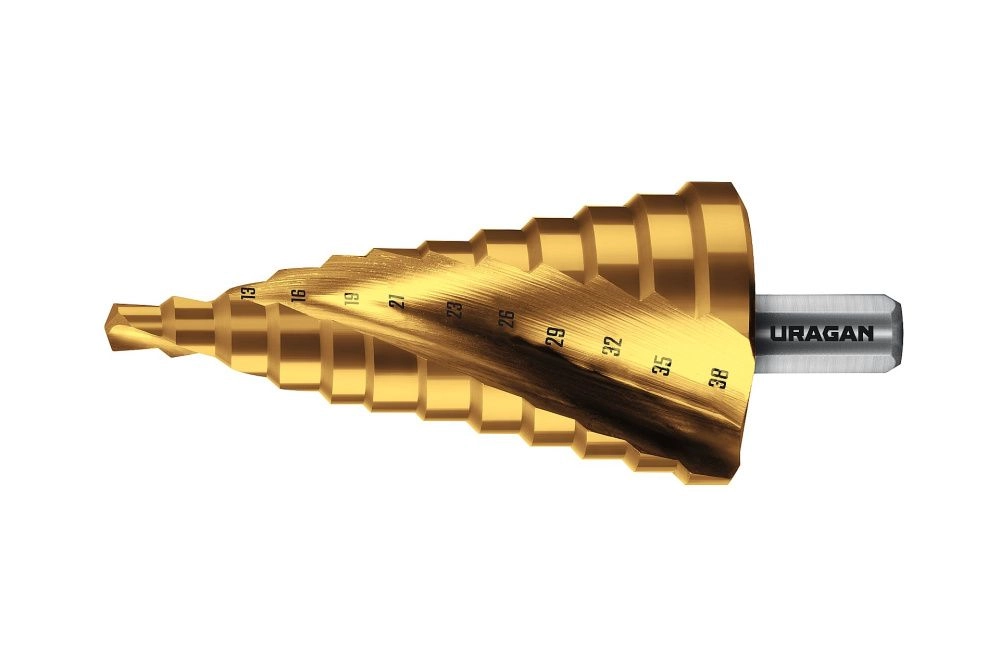 ПроизводителиСверло ступенчатое, 12 ступеней, 6-38мм (29658-6-38-12) URAGAN