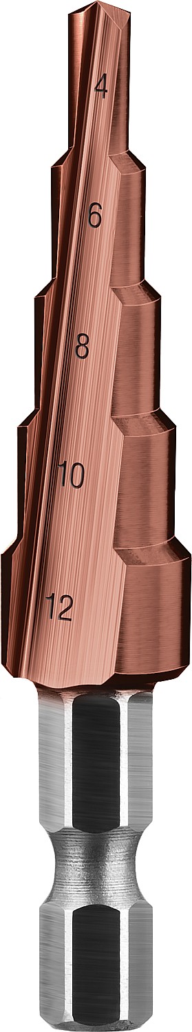 ПроизводителиСверло ступенчатое 4-12мм HSS-Co "КОБАЛЬТ" (29672-4-12-5_z01) ЗУБР