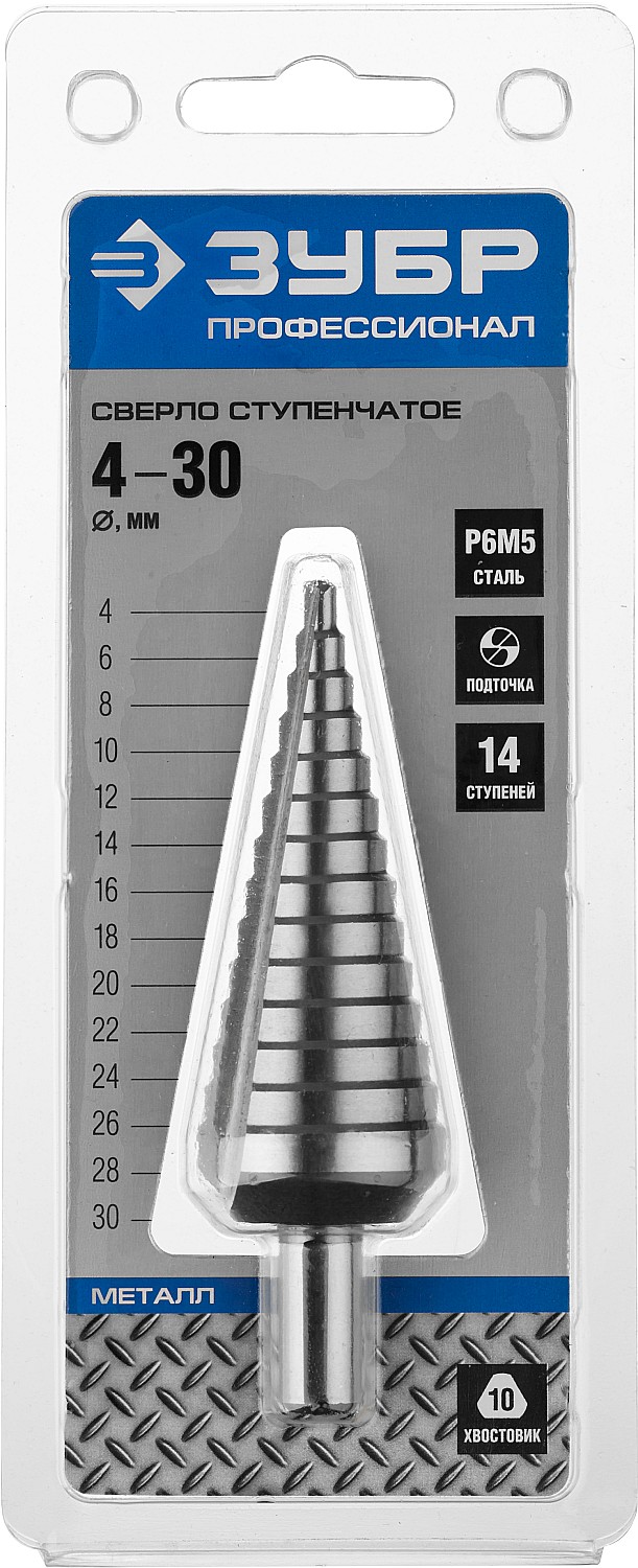 ПроизводителиСверло ступенчатое 4-30мм HSS, 14 ступеней (29670-4-30-14_z01) ЗУБР