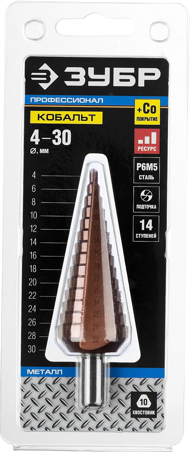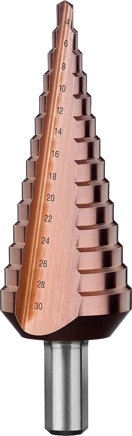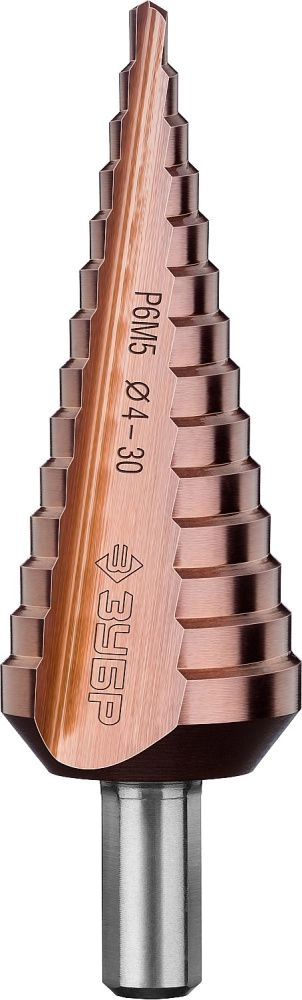 ПроизводителиСверло ступенчатое 4-30мм HSS-Co, 14 ступеней "КОБАЛЬТ" (29672-4-30-14_z01) ЗУБР