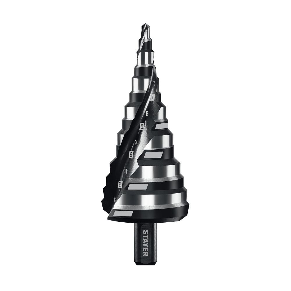 ПроизводителиСверло ступенчатое 4-39 мм, 14 ступеней, винтовая спираль (29661-4-39-14) STAYER
