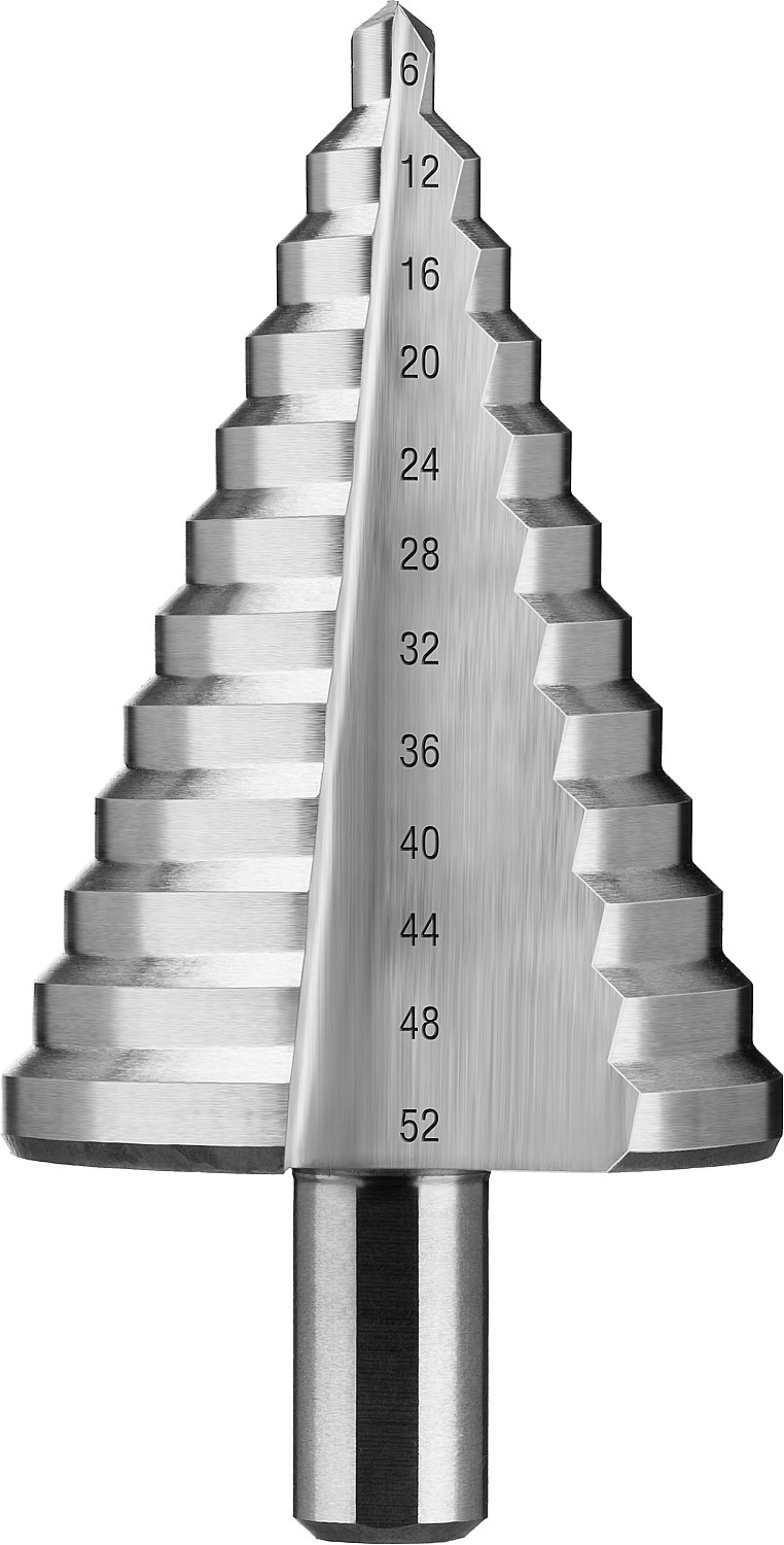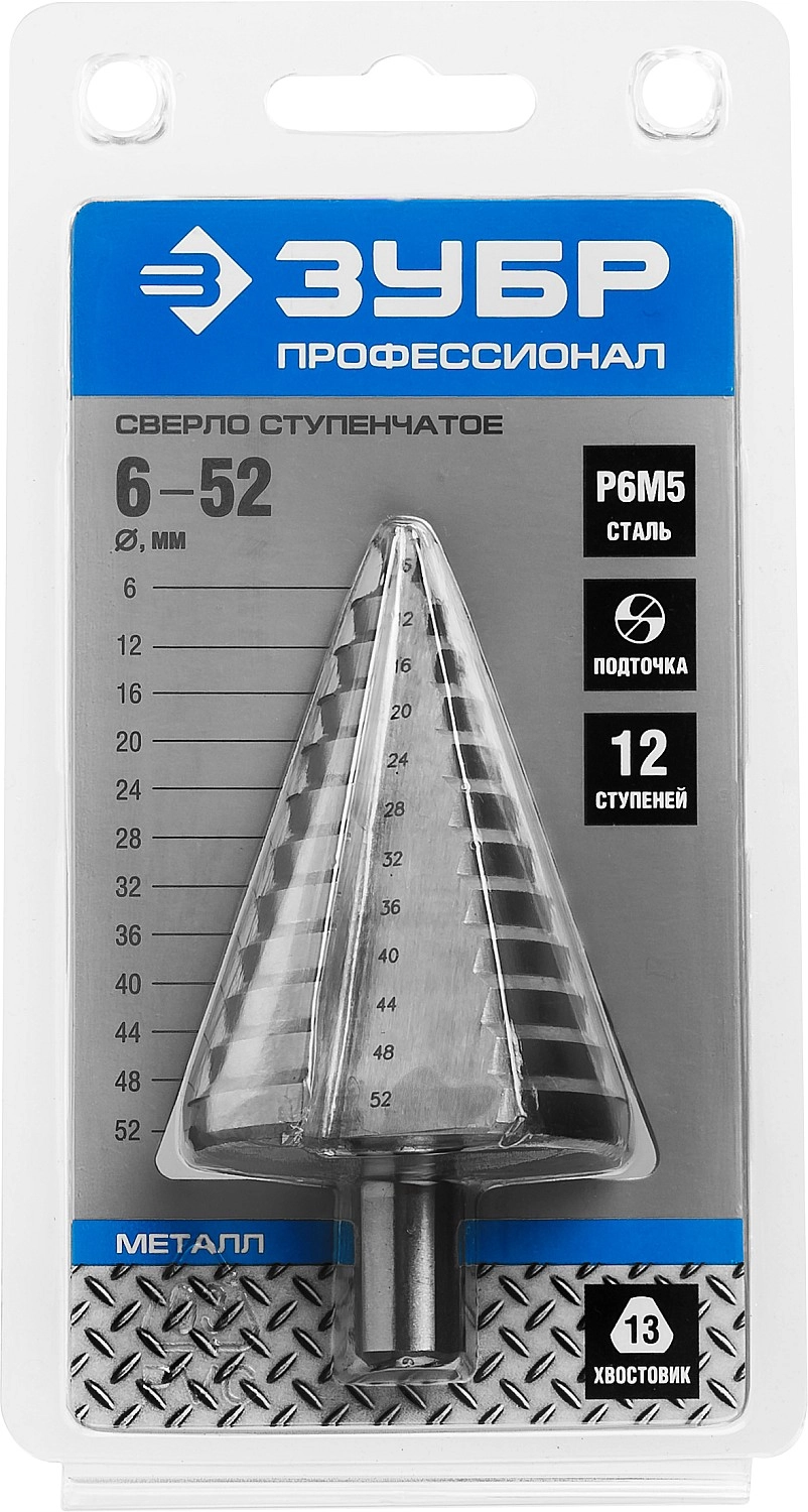 ПроизводителиСверло ступенчатое 6-52мм, 12 ступ., по сталям и цвет. мет., HSS "ПРОФЕССИОНАЛ" (29670-6-52) ЗУБР