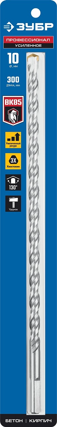 ПроизводителиСверло по бетону, ударное, 3-х гран. хвостовик, 10x300мм (2916-300-10_z01) ЗУБР
