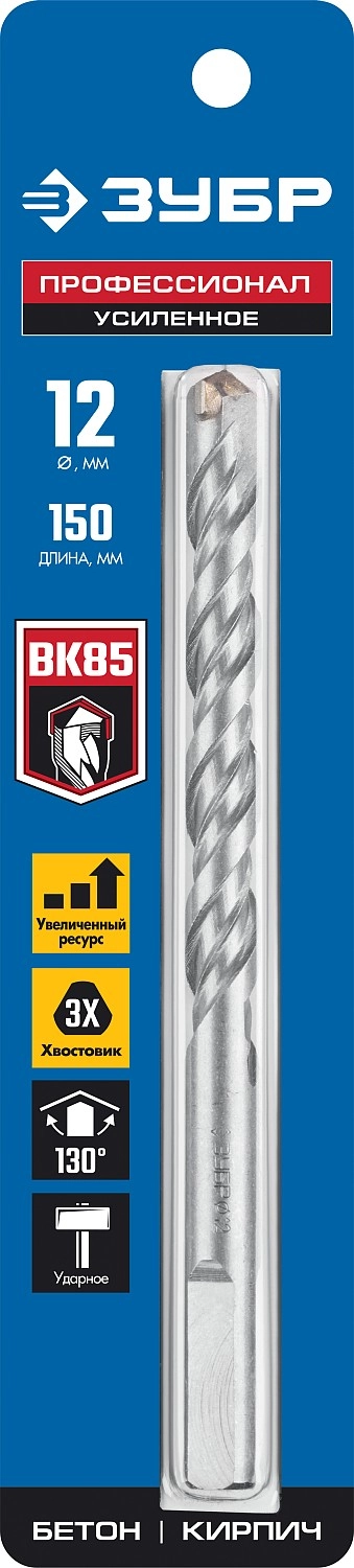 ПроизводителиСверло по бетону, ударное, 3-х гран. хвостовик, 12x150мм (2916-150-12_z01) ЗУБР
