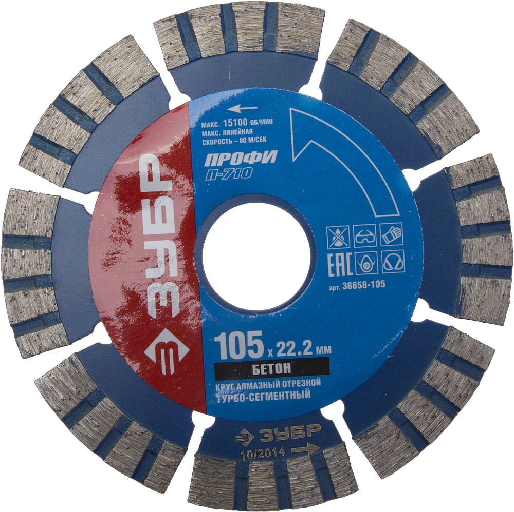 ПроизводителиТ-710 БЕТОН 105 мм, диск алмазный отрезной по высокопрочному бетону, Профессионал (36658-105) ЗУБР