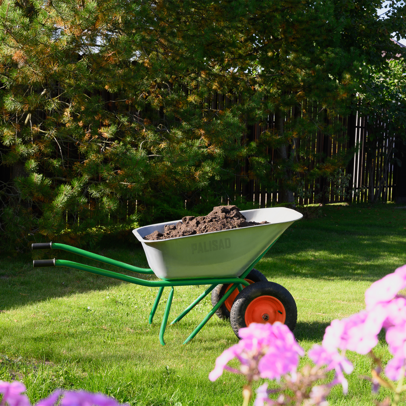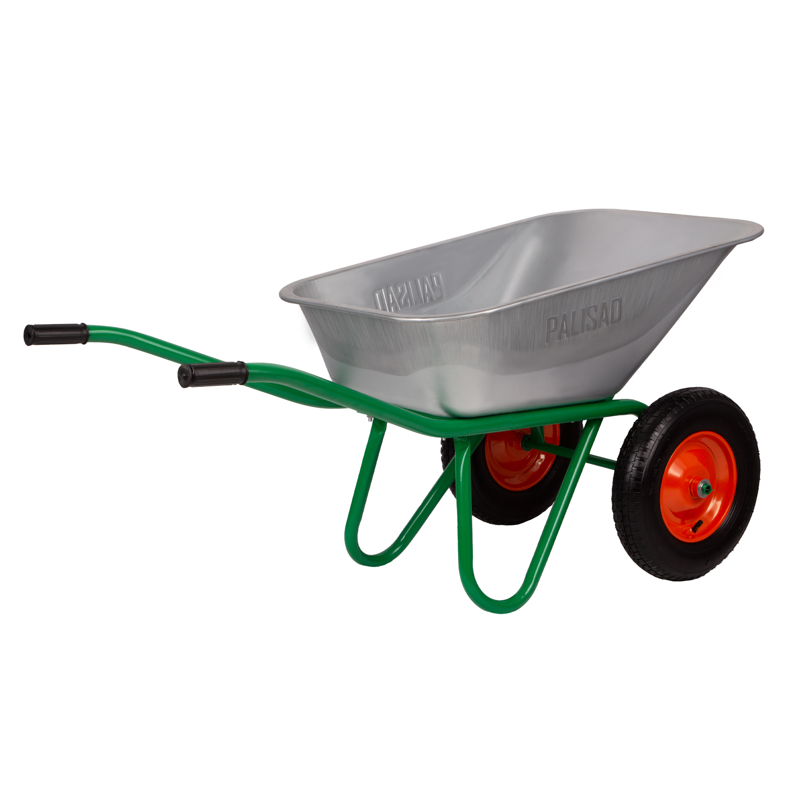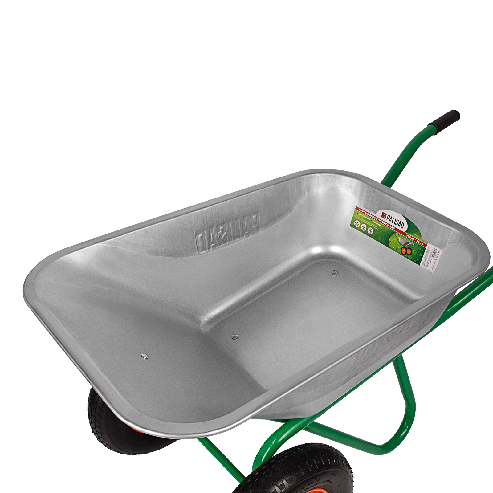 ПроизводителиТачка садово-строительная, 2-х колесн., усил., грузоподъемность 320 кг, объем 100 л (68923) PALISAD