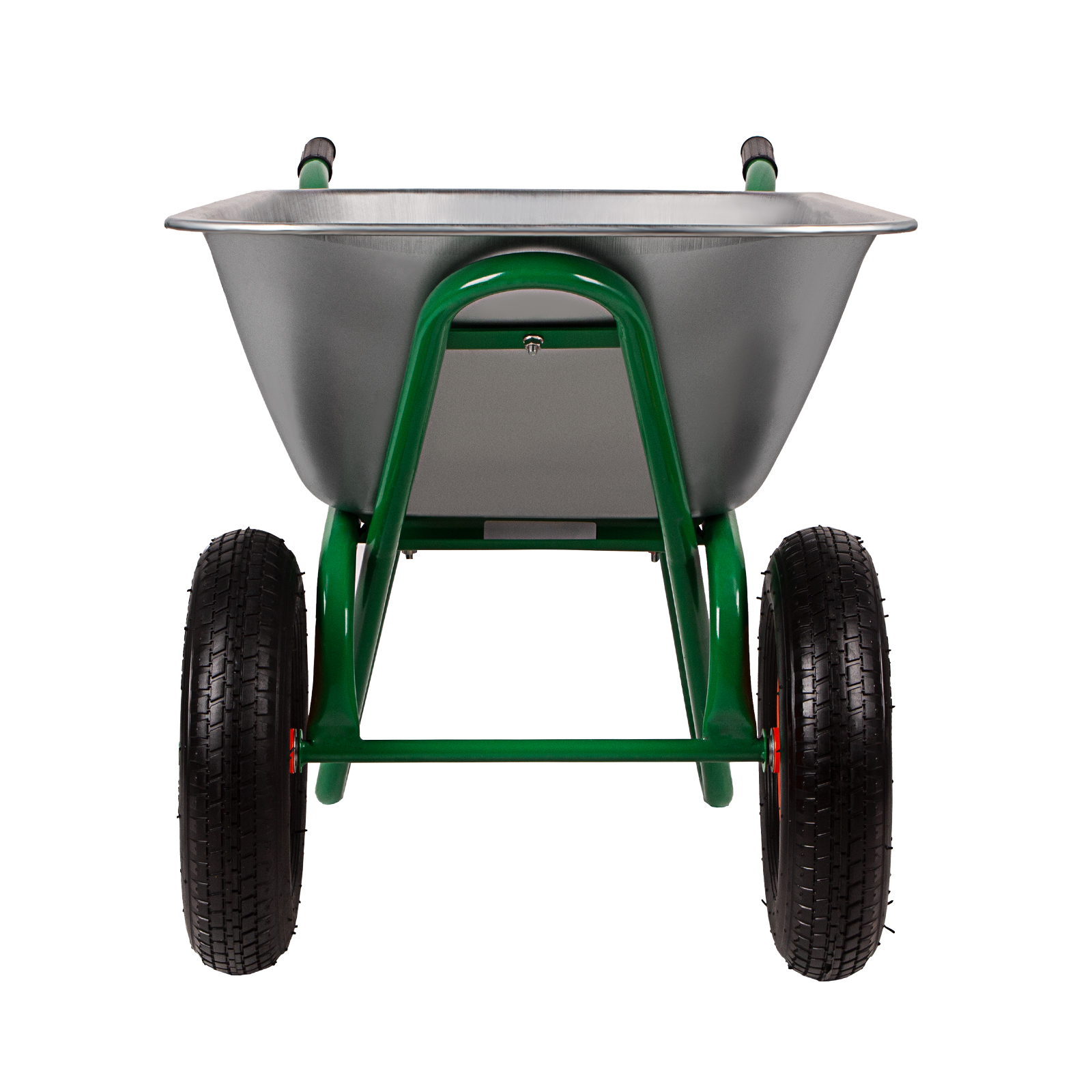 - Надежная конструкция — толщина стенок кузова составляет 0,8 мм, а рамы — 1,5 мм, что обеспечивает увеличенную грузоподъемность тачки.