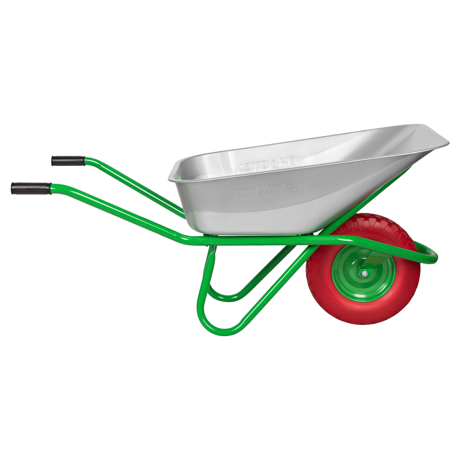ПроизводителиТачка садово-строительная одноколесная, 180 кг, объем 90 л, PU-колесо (68968) СИБРТЕХ