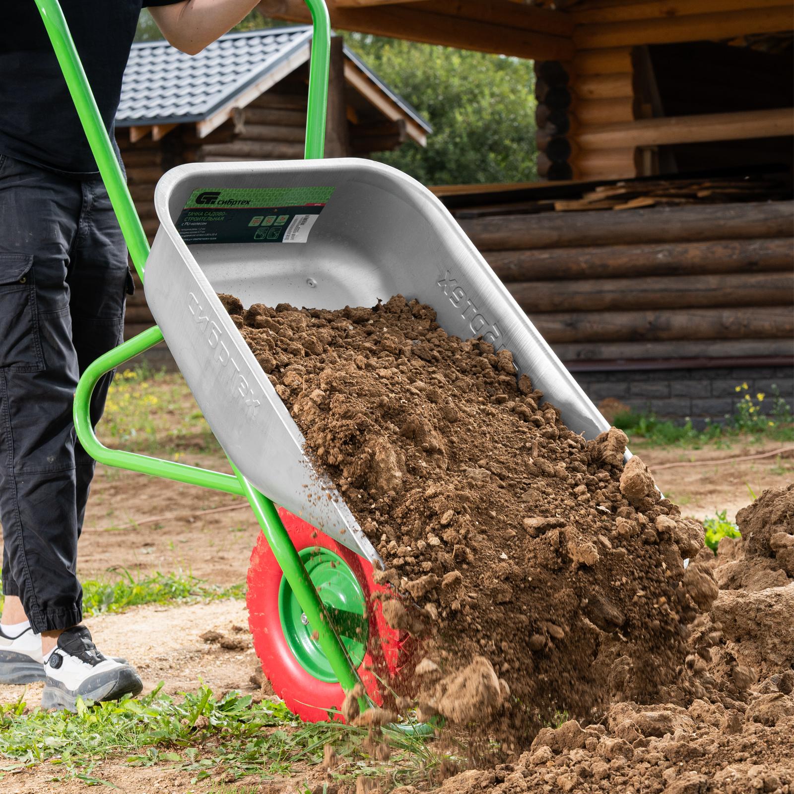 Хорошая проходимость — колесо с 2 шариковыми подшипниками легко вращается, позволяя перемещать тачку по неровной поверхности.