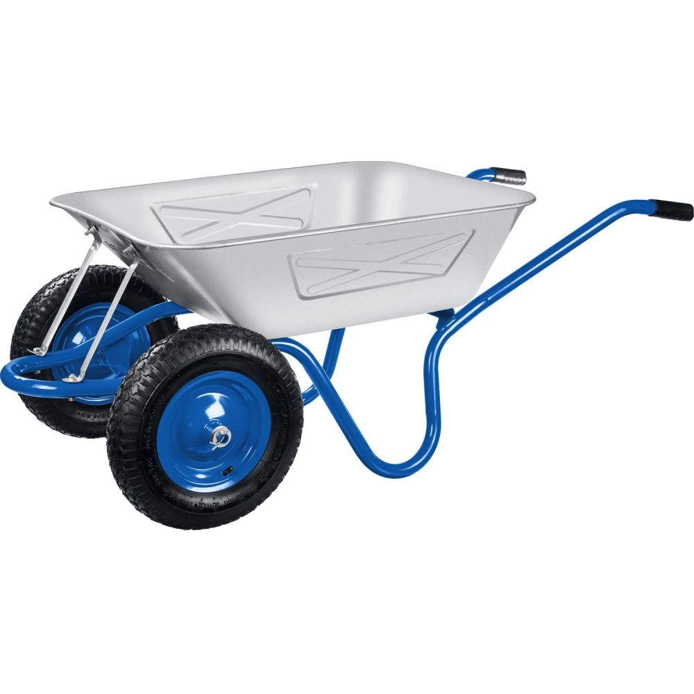 - -Cтальной кузов толщиной 0,9мм и объемом 130л для сыпучих грузов имеет цинковое покрытие, обеспечивающее защиту тачки от внешних воздействий.,