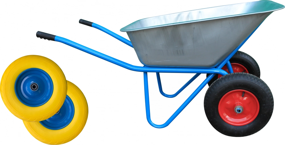 ПроизводителиТачка строительная 130л (2 полиуретановых + 2 пневмо колеса, 350 кг) (KL80130-2) KLASSE