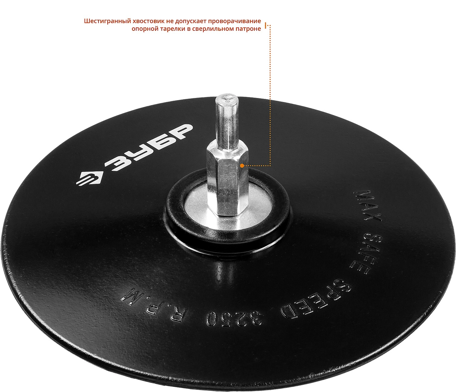 ПроизводителиТарелка опорная ЗУБР "МАСТЕР" резиновая для дрели под круг фибровый, d 125 мм, шпилька d 8 мм