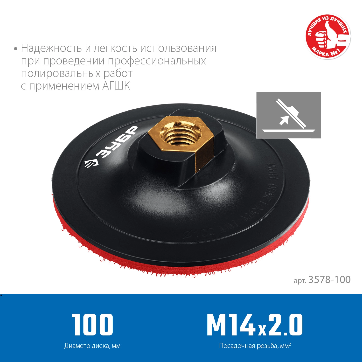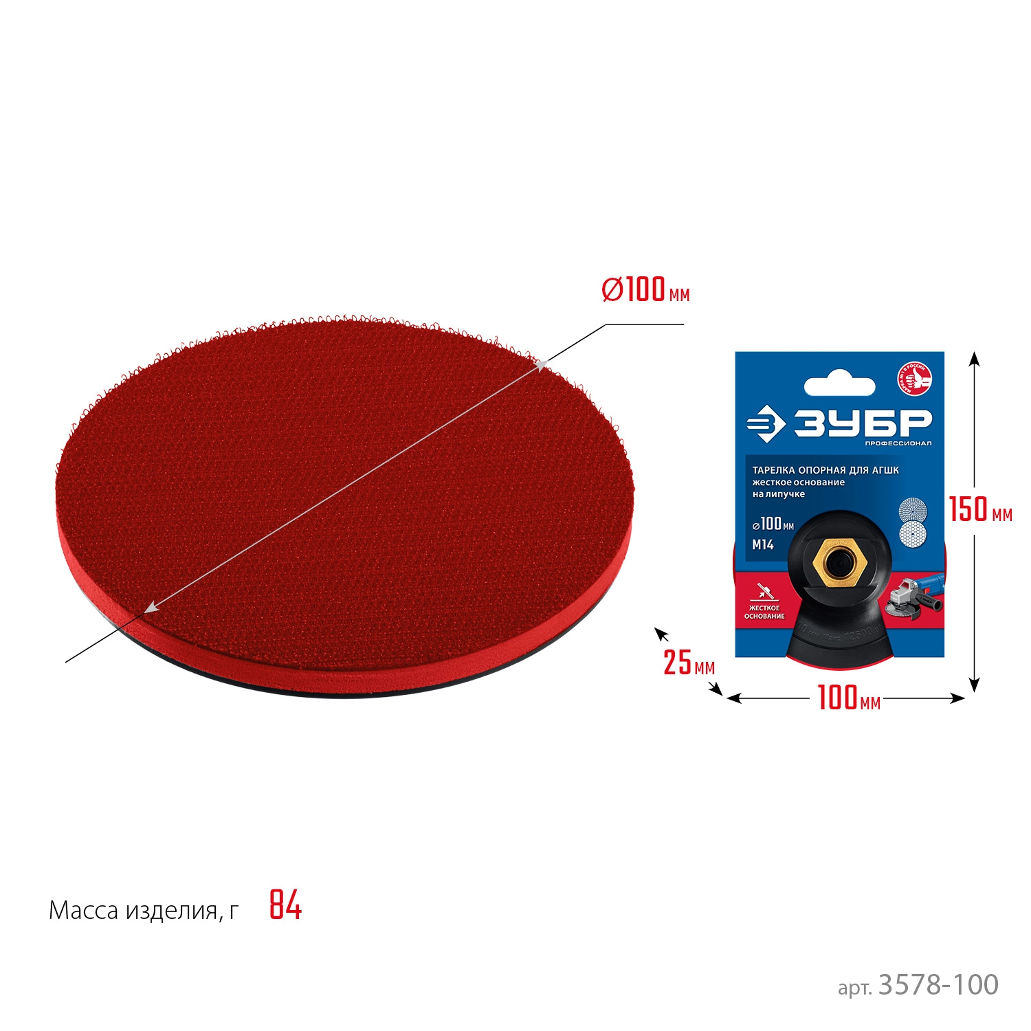ПроизводителиТарелка опорная,пластиковая,на липучке для УШМ под АГШК,М14, d 100мм,Профессионал (3578-100) ЗУБР