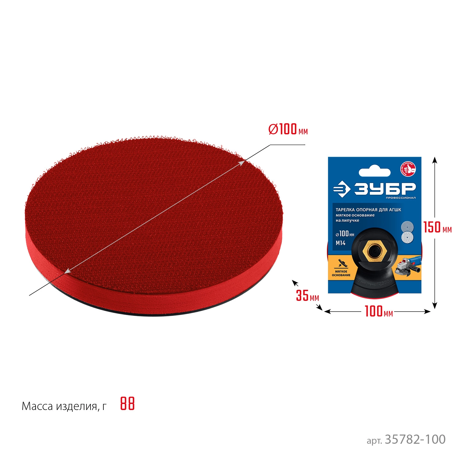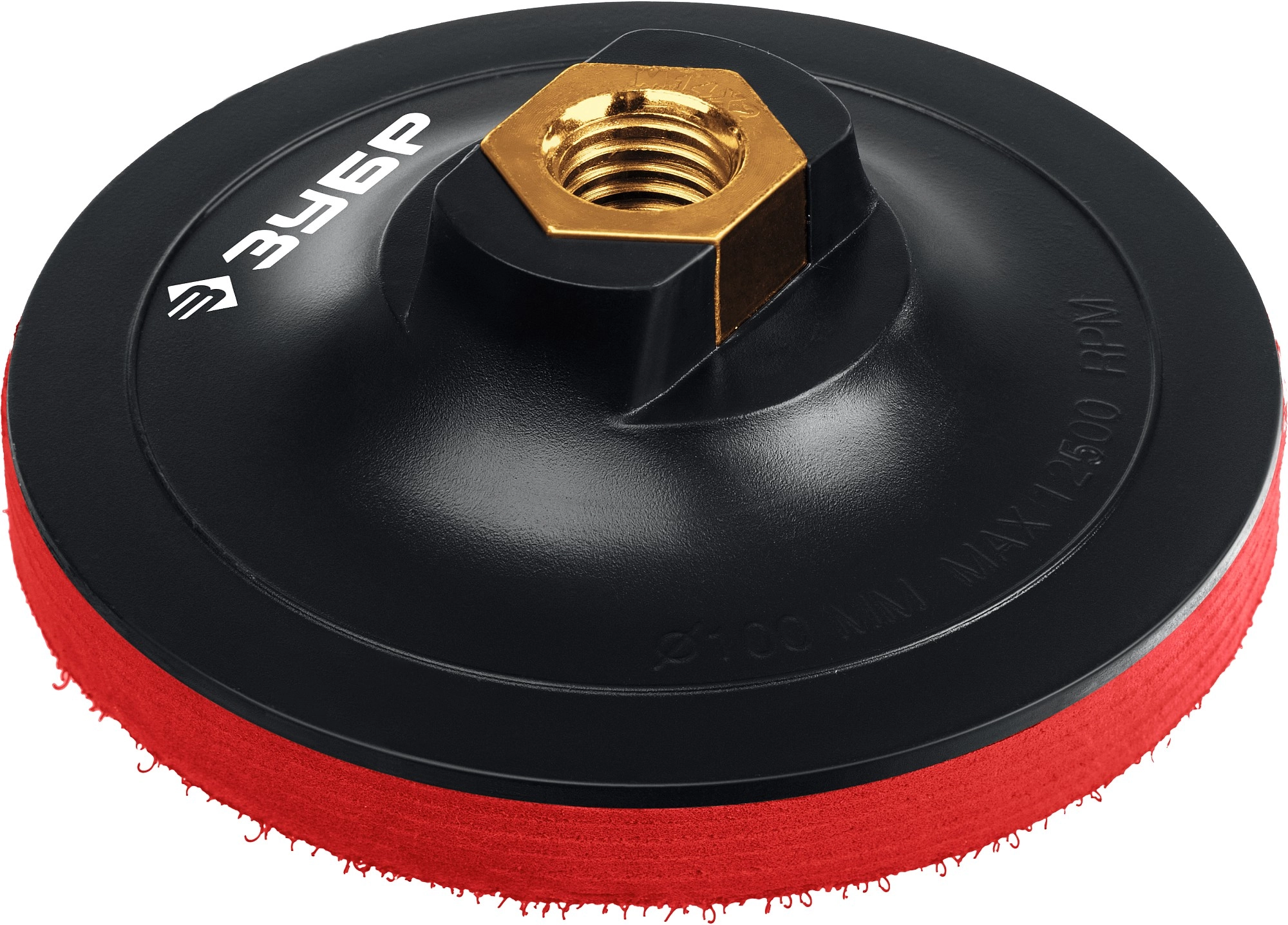 ПроизводителиТарелка опорная с липучкой к УШМ, с мягкой прокладкой, d=100мм/М14 (35782-100) ЗУБР