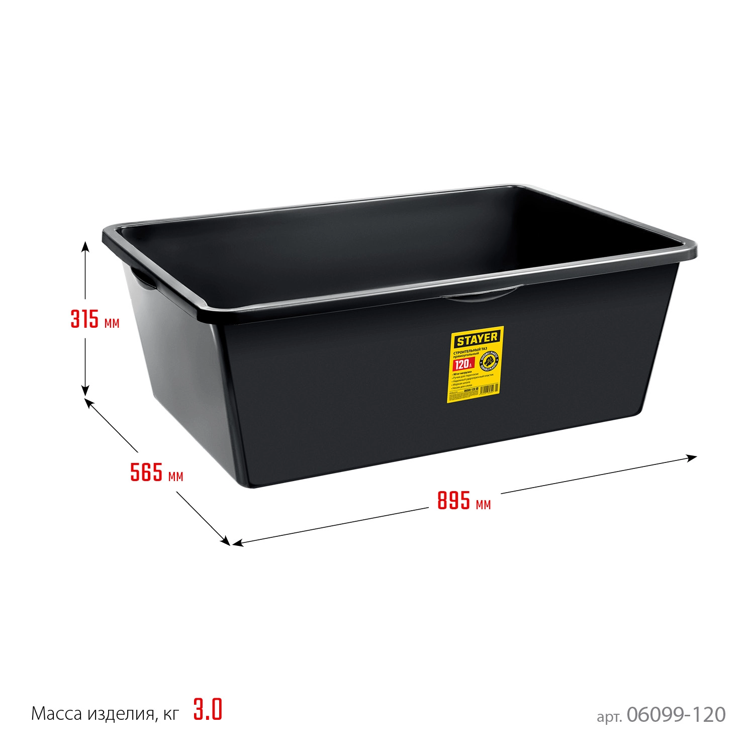 ПроизводителиТаз строительный прямоугольный, 120л (06099-120_z01) STAYER