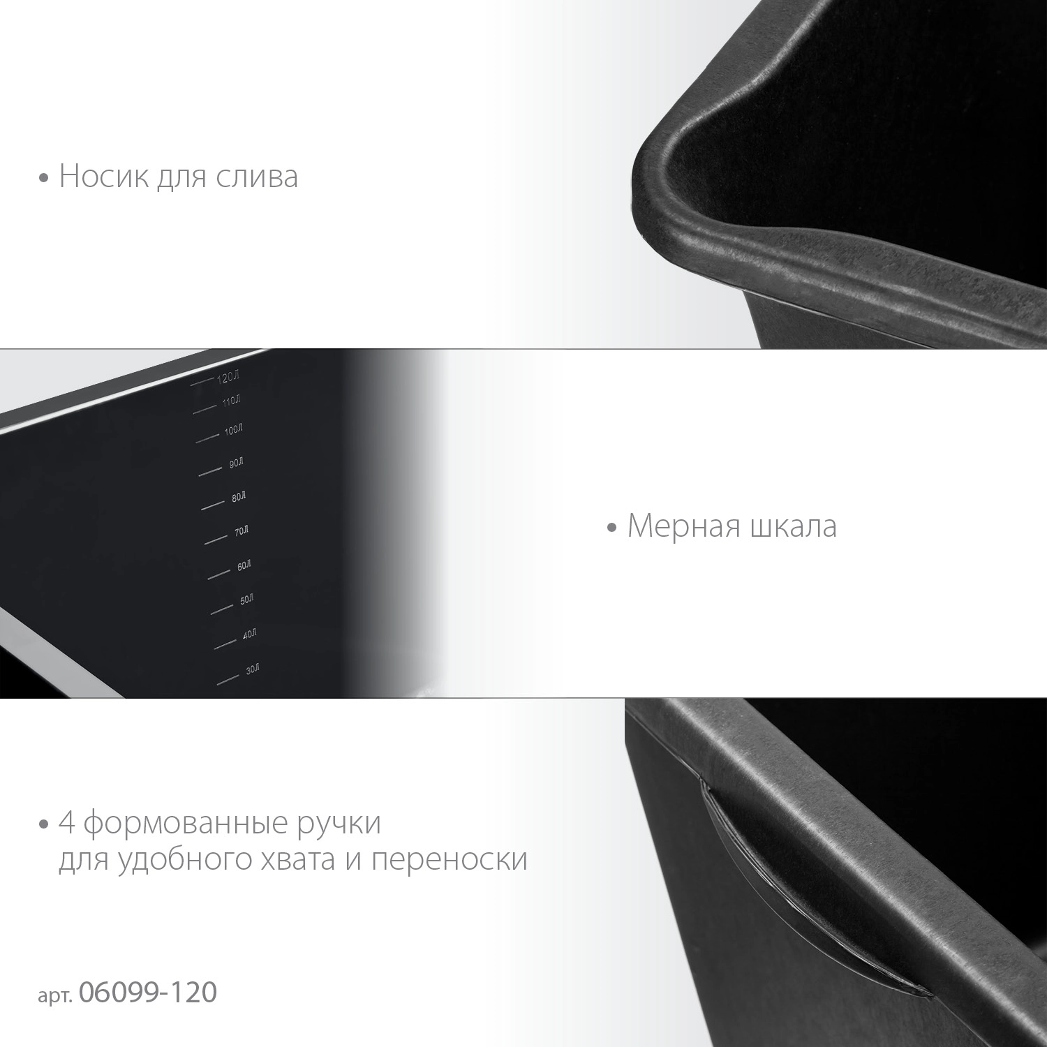 СТАНДАРТУровень качества. При классификации продуктов, имеющих схожее наименование, но обладающие различными потребительскими свойствами мы приняли следующий Вес факторов: 80% - подтвержденный ресурс, 15% - заявленная производительность/скорость, 5% - субъективные ощущения потребителя. ПодробнееКод товара: 0016762(8)ХарактеристикиАртикул 06099-120_z01Бренды StayerСтрана производства РоссияЕмкость, л 120Вес 2.7Таз строительный подходит для приготовления любых видов строительных растворов(клеевых, штукатурных, лакокрасочных). Выполнен из высокопрочного морозостойкого пластика, устойчивого к химическому и механическому воздействиям. Имеет устойчивую конструкцию и 4 формованные ручки для удобного хвата и переноски
