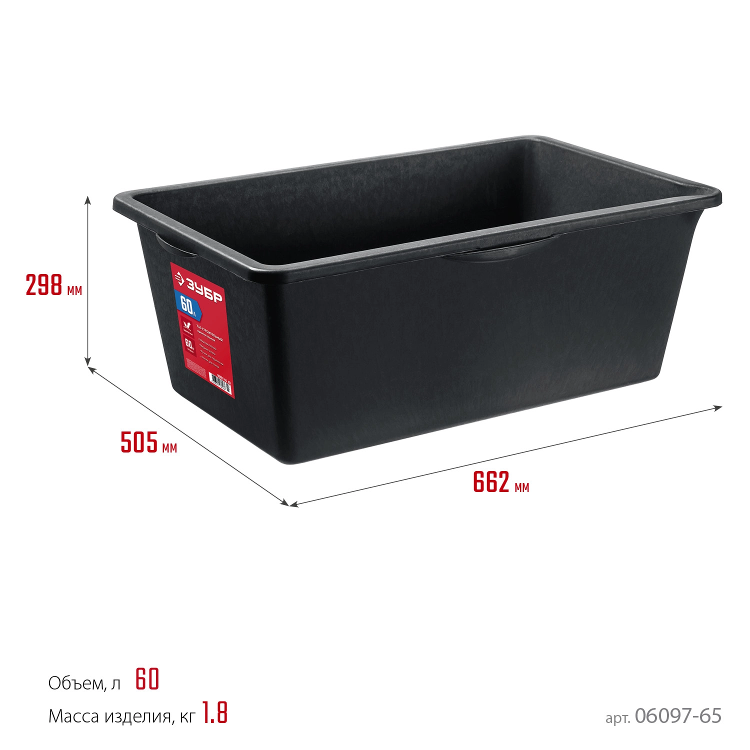 ПроизводителиТаз строительный прямоугольный, 60л (06097-66_z03) ЗУБР