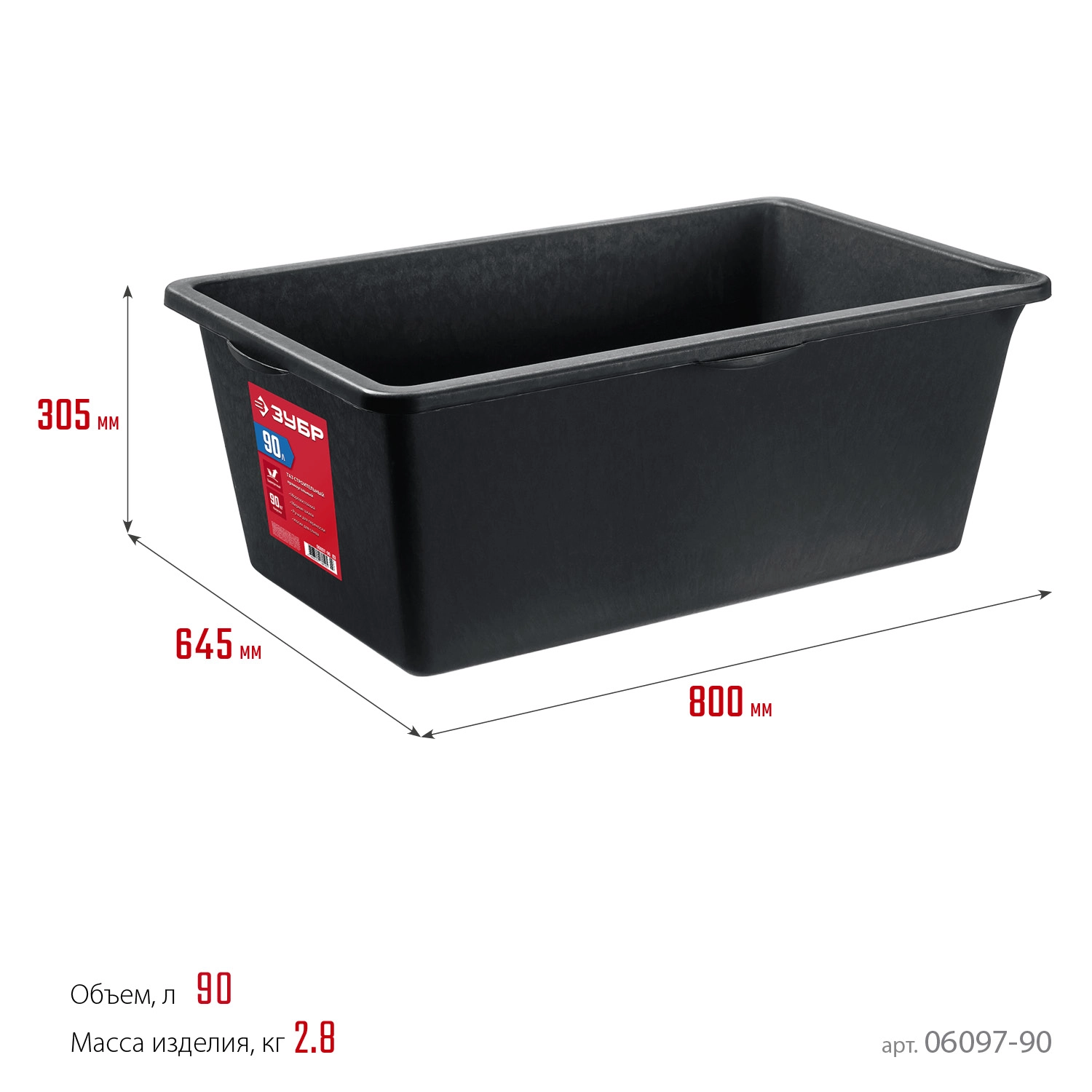 ПроизводителиТаз строительный прямоугольный, 90л (06097-90_z03) ЗУБР
