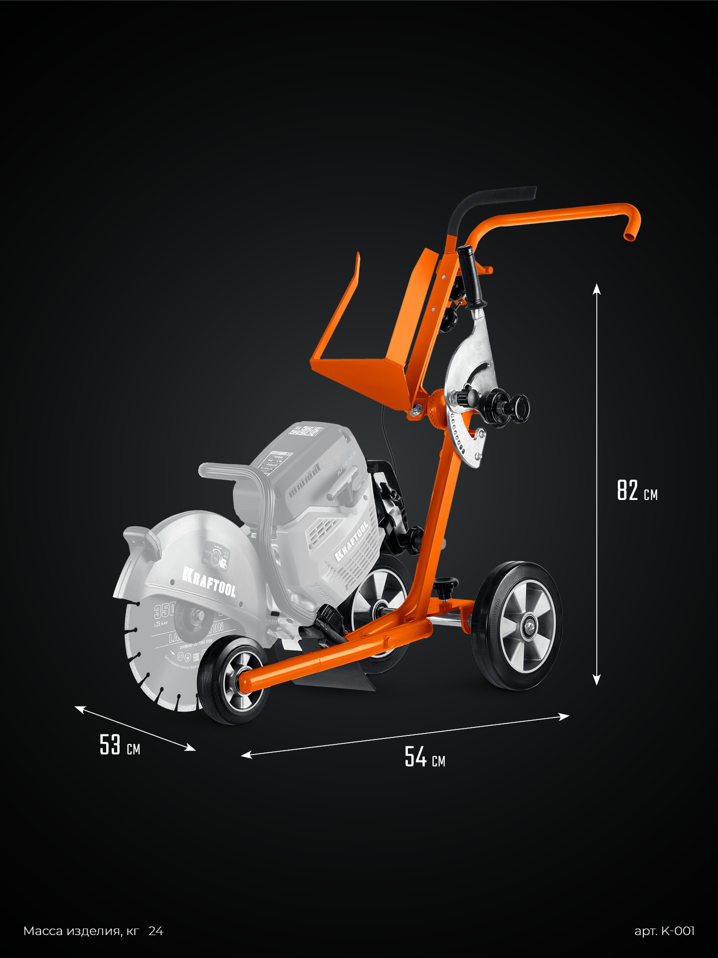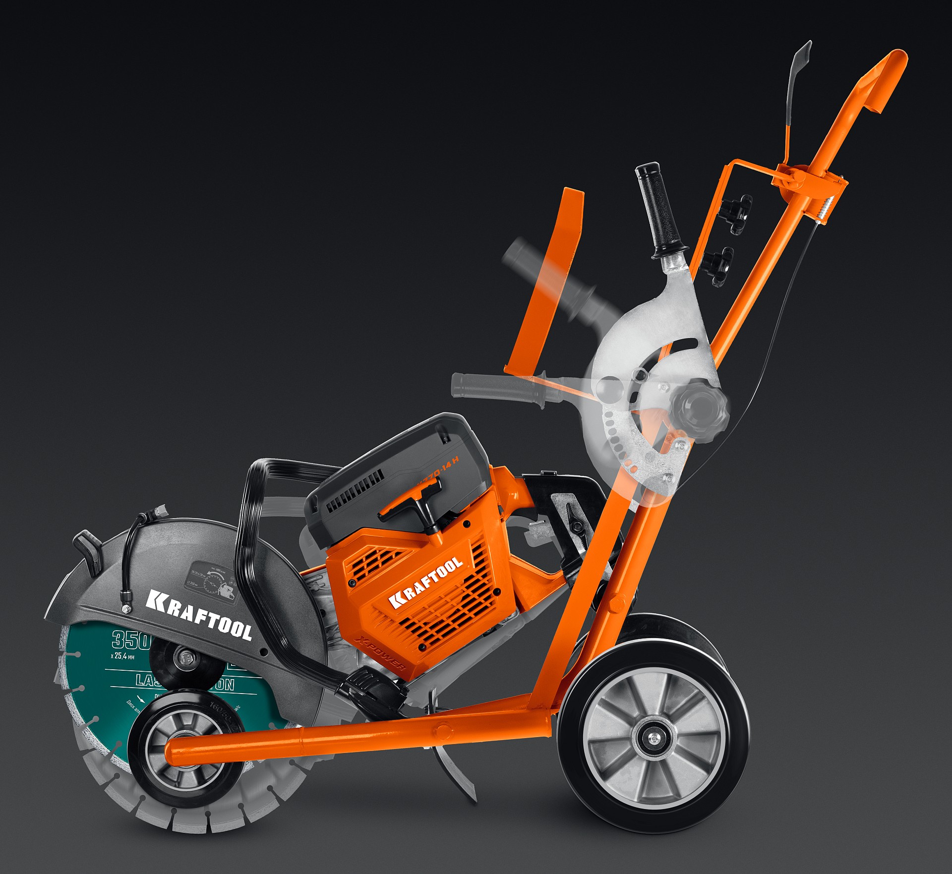 Для всех бензорезов Kraftool. Применение тележки позволяет выполнять длинные ровные резы с заданной глубиной по прямой, по дуге, рядом с вертикальными поверхностями.