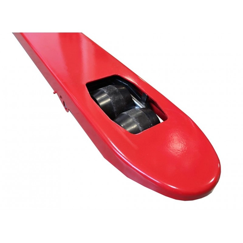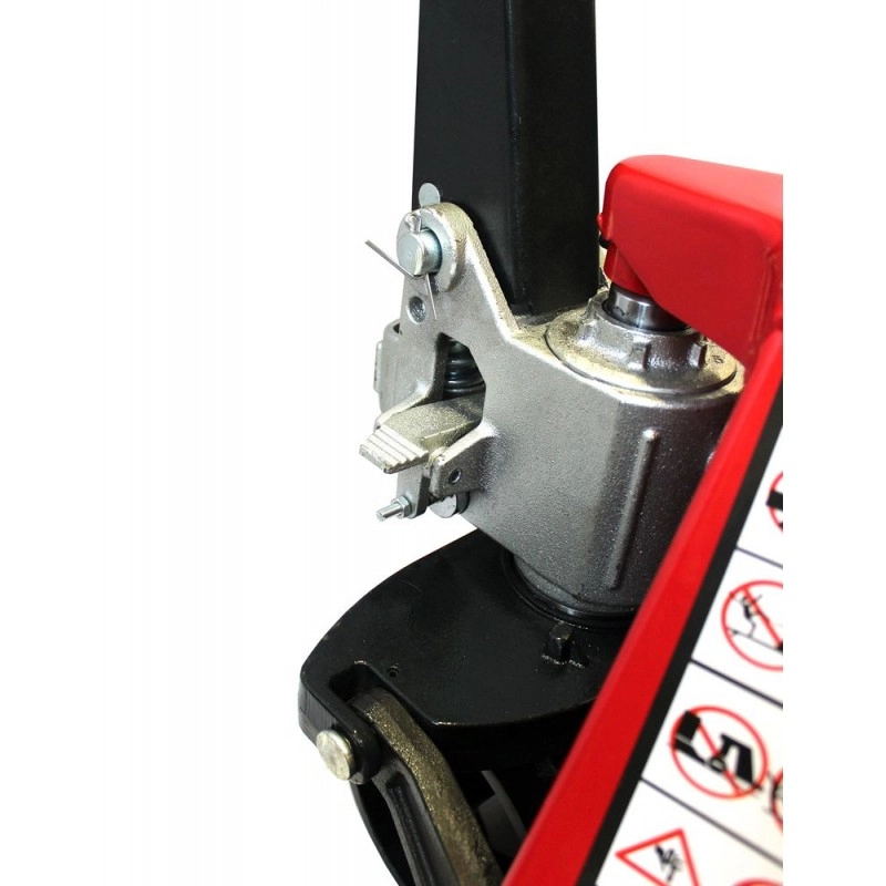 Гидравлическая тележка представляет собой прочную и долговечную модель для использования в крупных торговых точках и на складах. Конструкция вил оптимально подходит для подъема как стандартных, так и европоддонов.