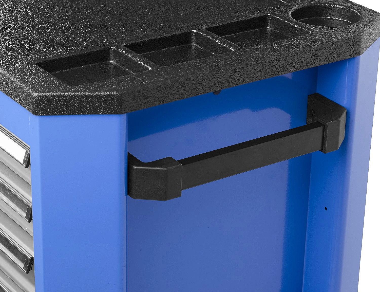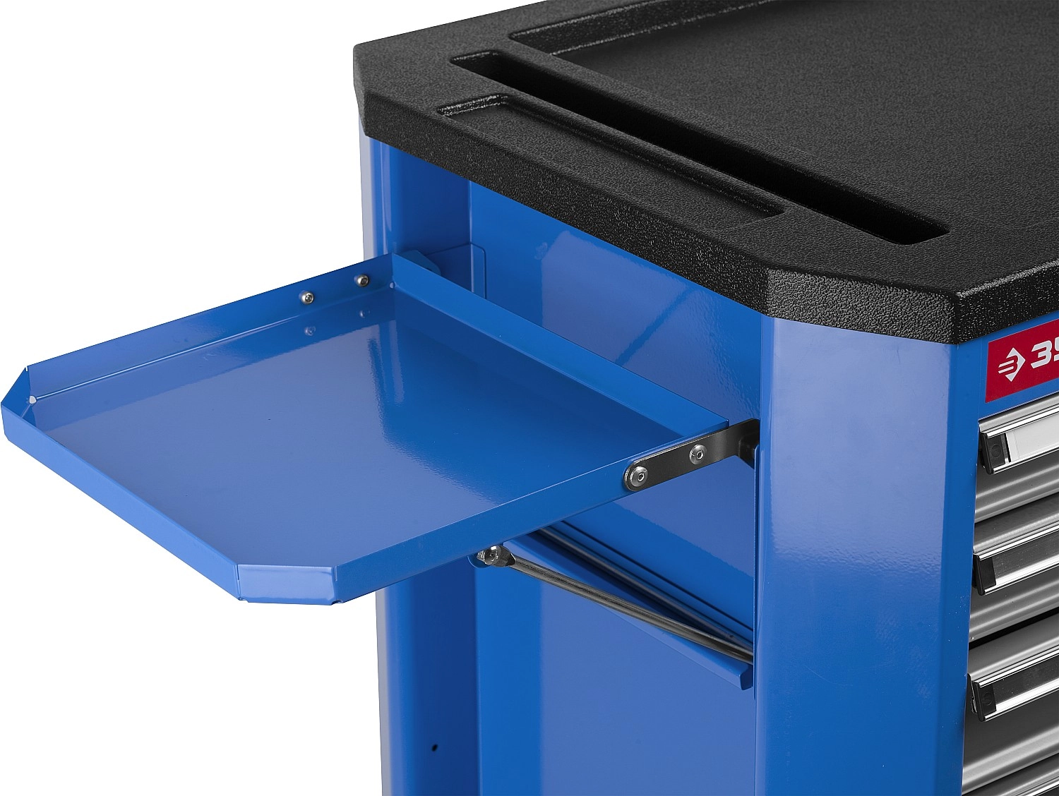 Тележка инструментальная ЗУБР 38903-7, используется для организованного хранение инструмента. Профессиональная тележка позволит Вам комфортно организовать рабочее место с легким доступом ко всем инструментам. При необходимости Вы можете транспортировать его, а так же использовать ключи для безопасности. Система BBS. Максимальная нагрузка 300 кг. Центральный замок. 2 ключа в комплекте. Размер колес 5" х 2". Толщина металла 1 мм. Противоскользящие коврики в каждом ящике.Производитель: Крафтул И/Е Гмбх, Альтер Поствег Штр., Лоенинген, Германия