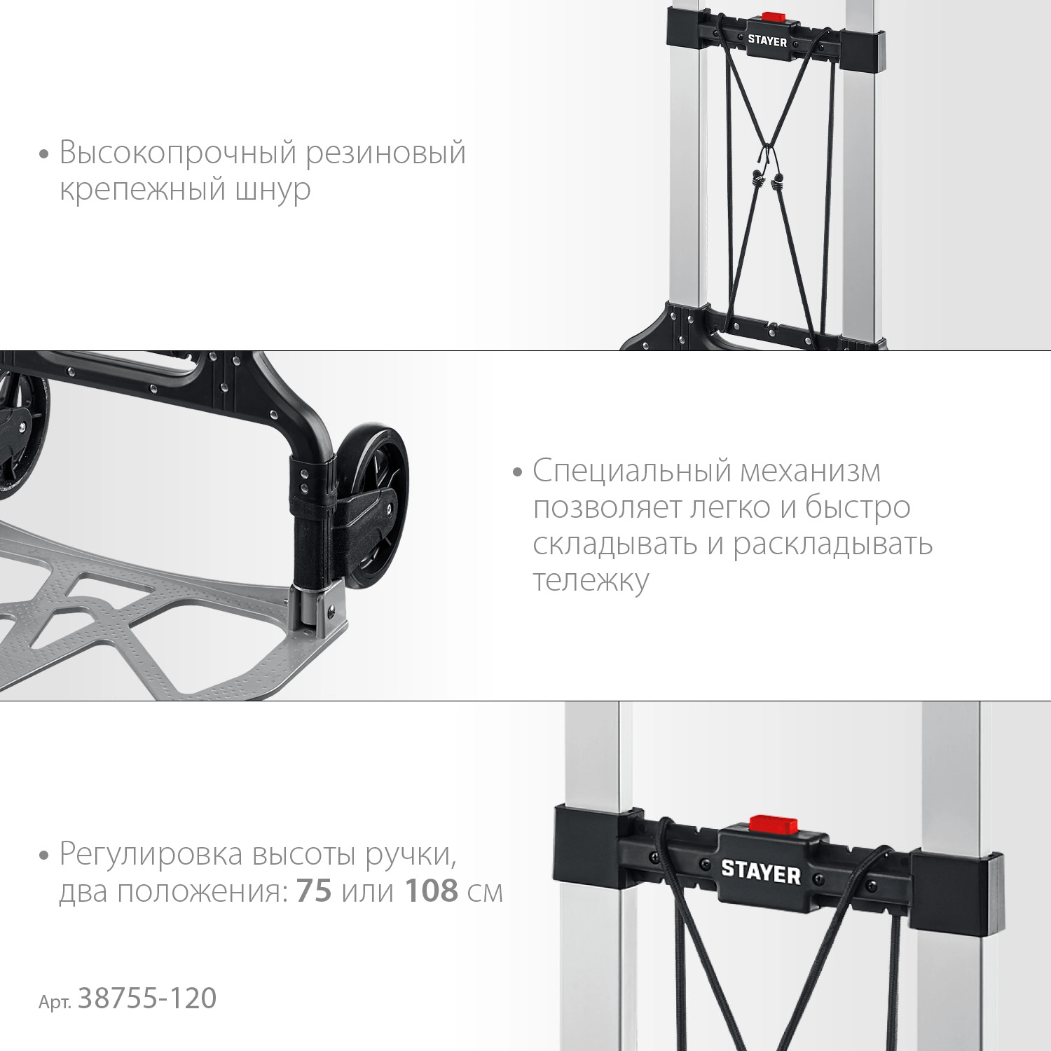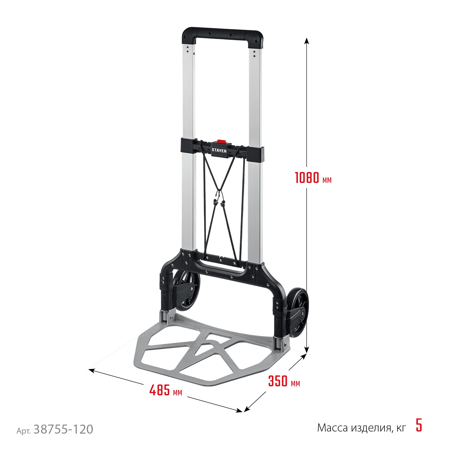ПроизводителиТележка хозяйственная, складная, максимальная нагрузка 120 кг "PROTruck" (38755-120) STAYER