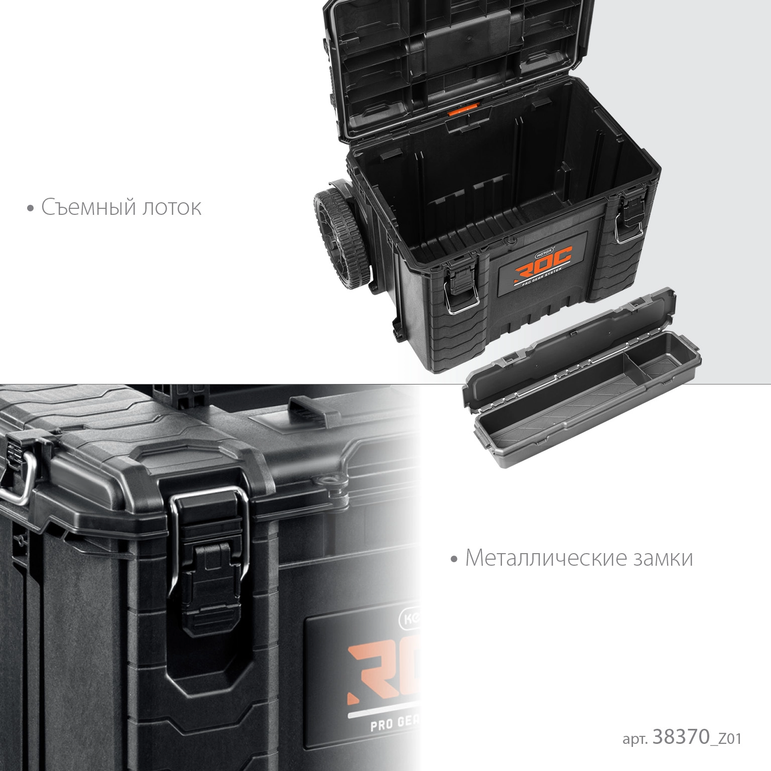 ПроизводителиТележка с пластиковым ящиком, ROC PRO GEAR 2.0 22 (38370_z01) Keter