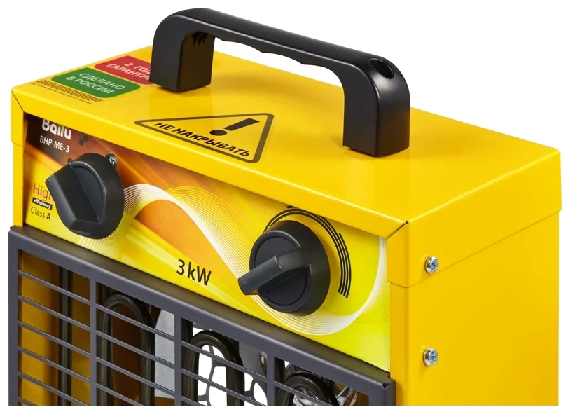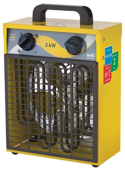 ХарактеристикиАртикул Ballu BHP-ME-3Бренды BALLUСтрана производства РоссияГарантия 12 месяцевТип электрическаяМощность, кВТ 3Площадь обогрева, м² 36Производительность 300Регулировка температуры ДаВес 2.9Напряжение сети 220-240Термопредохранитель ДаМощность 3Регулировка мощности 2Напряжение 220 ВПлощадь обогрева 35Термостат естьЗащитное отключение естьТип управления механическоеВентиляция без нагрева ДаДлина 24.5Ширина 35Высота 18.5Возможность регулировка мощности ДаТип нагревателя гладкий ТЭНРучка для переноски ДаОписание товара обновлено 30.01.2026 13:28:12Тепловая пушка Ballu серии ME. Компактная и легкая, в традиционном прямоугольном корпусе. Рассчитана на ежедневную непрерывную работу 24 часа. Выпускается в антивандальном исполнении и имеет современные системы защиты от перегрева. Для строящихся объектов и помещений в процессе ремонта, производственные цеха, ангары, склады, базы, мастерские и подсобные помещения, гаражи, павильоны и др. Встроенный терморегулятор. ТЭНы из нержавеющей стали. Две ступени мощности. Режим вентиляции. Защита от перегрева. Металлический корпус с антикоррозийной обработкой. Антивандальное покрытие решеток.Производитель: ПК БАЛЛУ Россия, Москва, ул. Нарвская 21