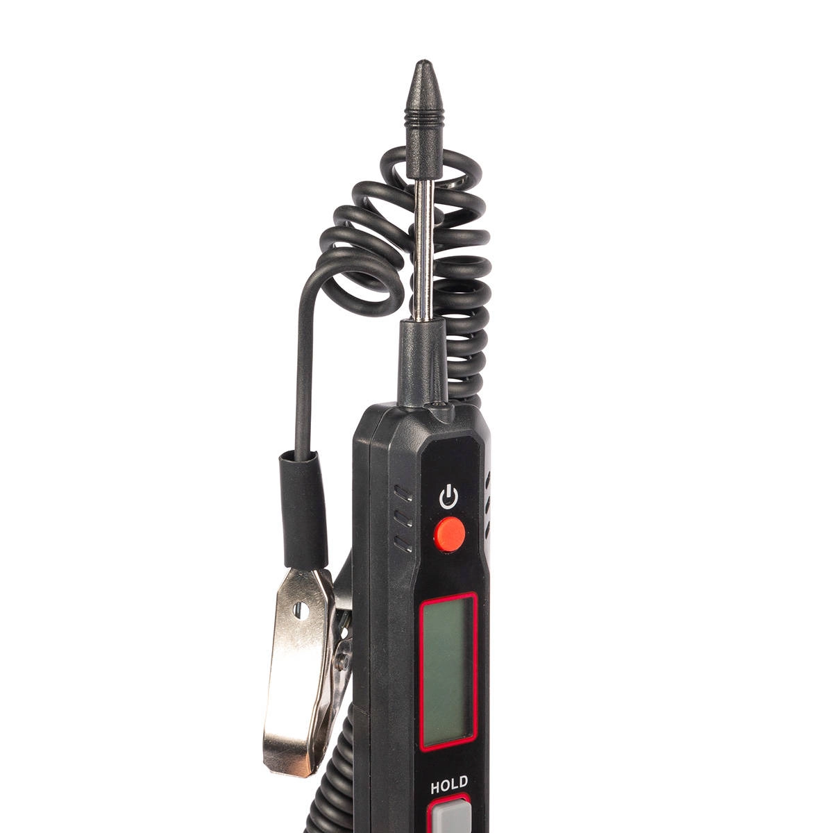 -Тестер напряжения цифровой позволяет произвести замер постоянного и переменного напряжения, сопротивления. Благодаря конструкции с растягивающимся гибким проводом и зажимом «крокодил», тестер возможно использовать при проверке электрооборудования в автомобилях