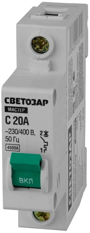 ПроизводителиВыключатель СВЕТОЗАР автоматический, 1-полюсный, "С" (тип расцепления), 20 A, 230 / 400 В