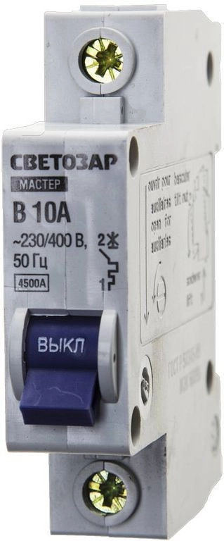 ПроизводителиВыключатель СВЕТОЗАР автоматический, 1-полюсный, "B" (тип расцепления), 10 A, 230 / 400 В