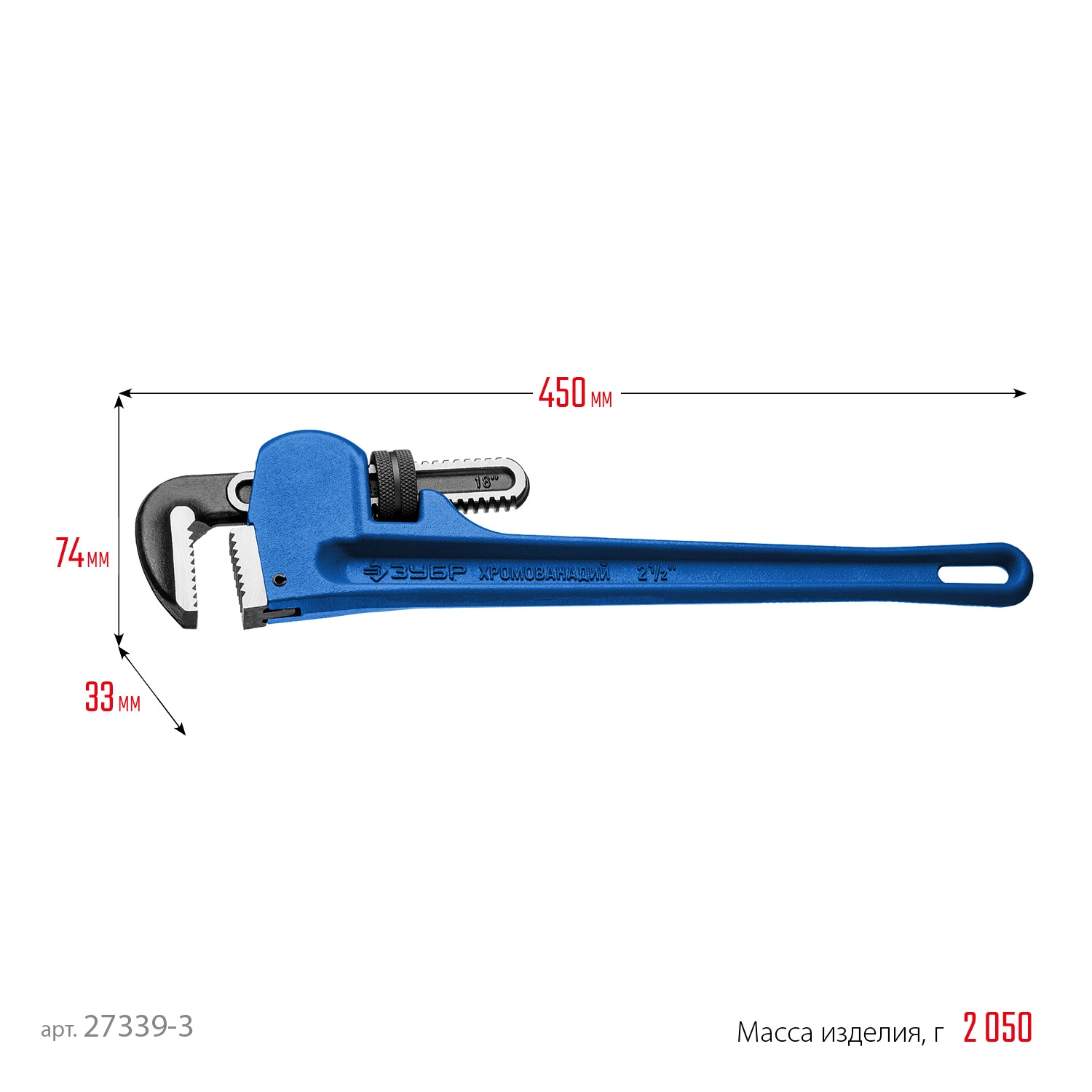 ПроизводителиКлюч разводной трубный, 2.5" Тип "С" (27339-3_z02) ЗУБР
