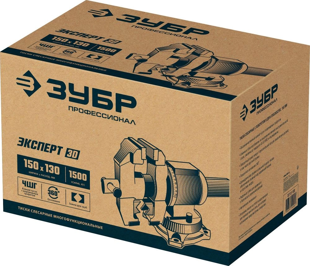 ПроизводителиТиски слесарные 150мм, многофункциональные с поворотом в двух плоскостях "ЭКСПЕРТ" (32712-150) ЗУБР