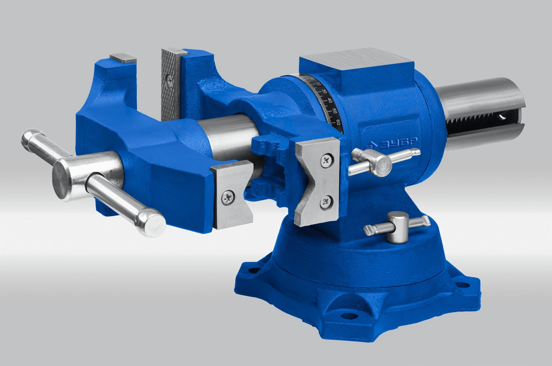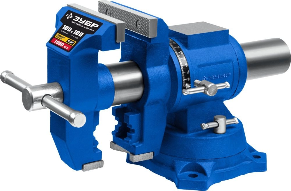 ПроизводителиТиски слесарные 100мм, многофункциональные с поворотом в двух плоскостях "ЭКСПЕРТ" (32712-100) ЗУБР