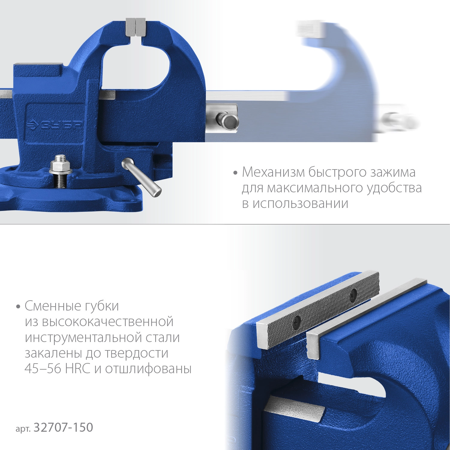 ПроизводителиТиски слесарные стальные 150мм, быстрозажимные (32707-150) ЗУБР