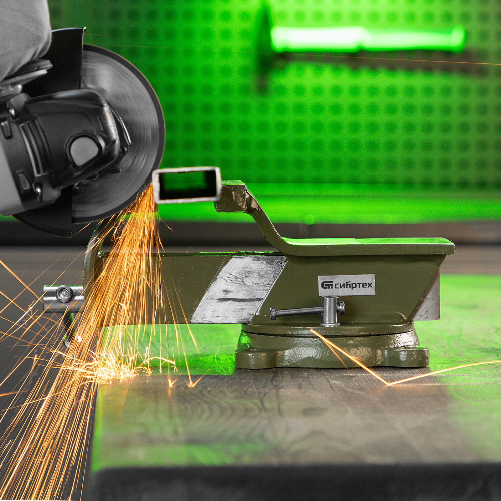 ПроизводителиТиски слесарные стальные, поворотные 125мм (18619) Сибртех