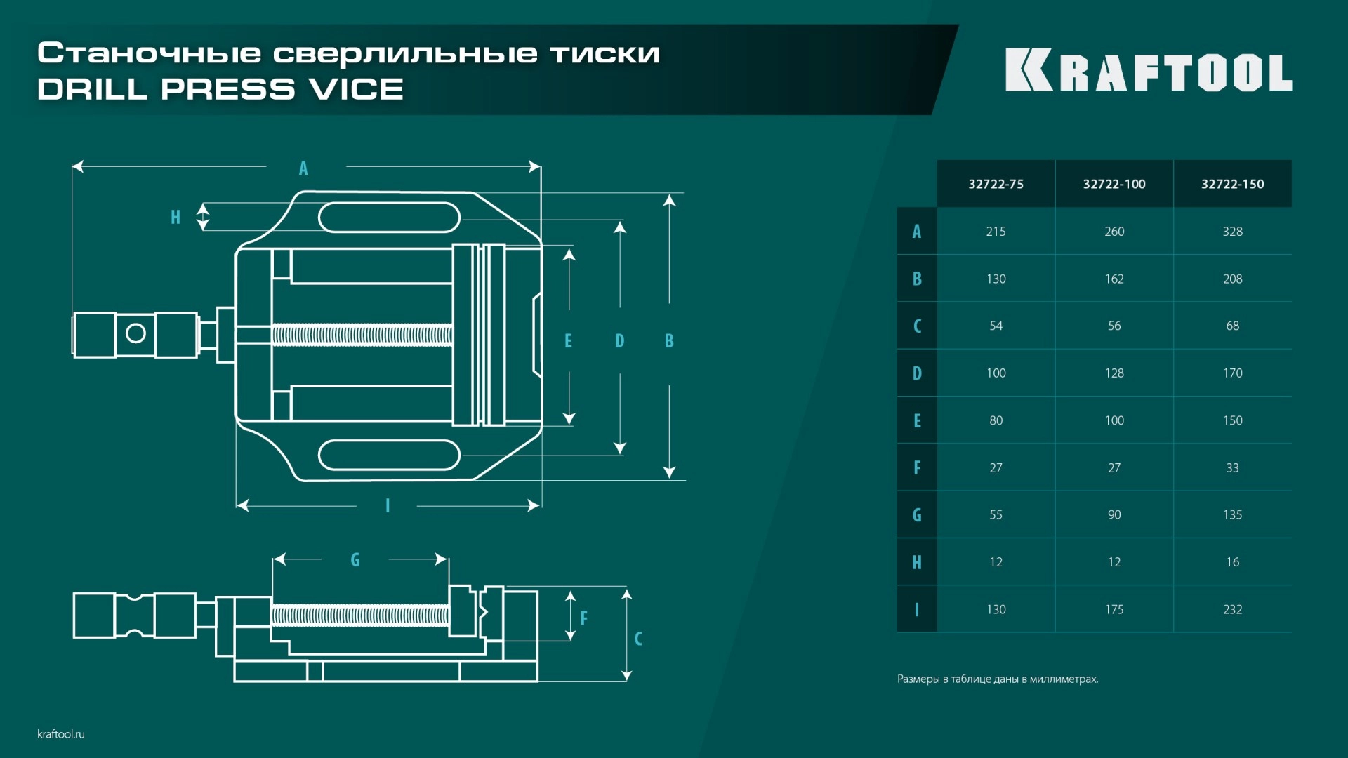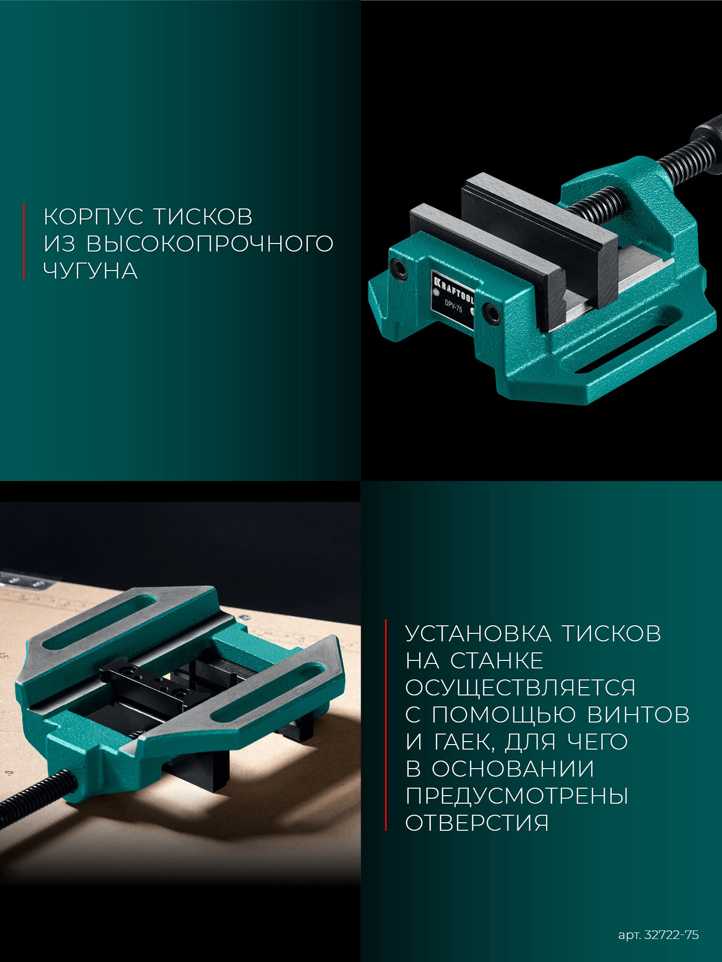 ПроизводителиТиски станочные,сверлильные,75 мм,DPV-75 (32722-75) KRAFTOOL