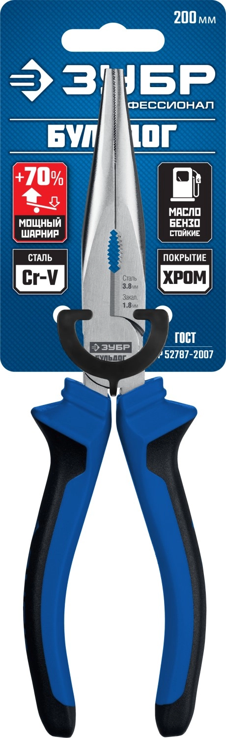 ПроизводителиТонкогубцы 200мм, эксцентр.располож.шарнира, Н12Х1 "БУЛЬДОГ" (2201-3-20) ЗУБР